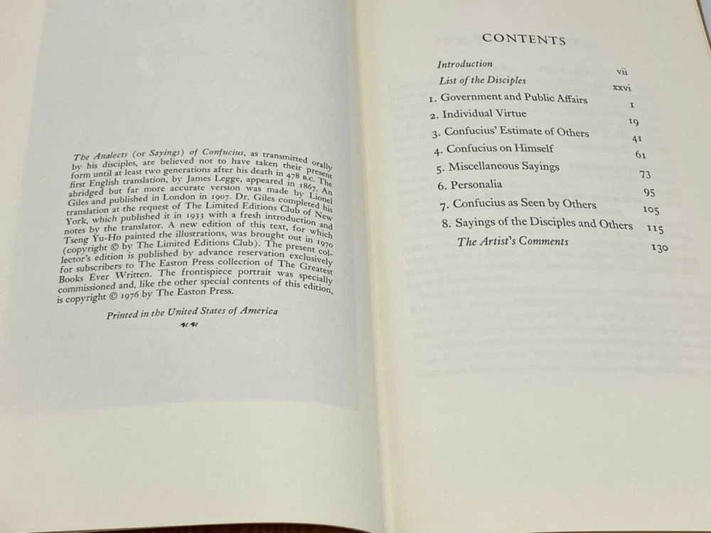 MAKES THE PERFECT GIFT FOR ANY FAN OF ANCIENT RELIGIONS / CONFUCIANISM ** PLEASE READ : Mahalo for taking the time to look at our listing. We truly appreciate it. We always do our BEST to give you the most accurate description of these beautiful books. If, however, you have any SPECIFIC questions about the SIZE of the book, NUMBER of pages, TYPE of leather, SMELL or FEEL of the book, PLEASE email us through EBay’s mail system BEFORE you bid, and we will be HAPPY to give you more information. We want you to be completely happy with your purchase and keep you as our customers for years to come!** DESCRIPTION: Easton Press’s full-leather binding, part of the 100 GREATEST BOOKS EVER WRITTEN, LONG OUT OF PRINT. THIS IS A VINTAGE HEIRLOOM EASTON WITH LAVISH DEEP GILT IMPRESSIONS TO THE BOARDS AND SPINE with GORGEOUS PAINTINGS by TSENG YU-HO . IT IS ONE OF THE MOST HIGHLY-PRIZED EDITIONS OF THIS FANTASY MASTERPIECE. 🍍 NOT INCLUDED… 😃 ABOUT THE BOOK: ‘ The Master said, “If a man sets his heart on benevolence, he will be free from evil”’ The Analects are a collection of Confucius’s sayings brought together by his pupils shortly after his death in 497 BC. Together they express a philosophy, or a moral code, by which Confucius, one of the most humane thinkers of all time, believed everyone should live. Upholding the ideals of wisdom, self-knowledge, courage and love of one’s fellow man, he argued that the pursuit of virtue should be every individual’s supreme goal. And, while following the Way, or the truth, might not result in immediate or material gain, Confucius showed that it could nevertheless bring its own powerful and lasting spiritual rewards. CONDITION: Book is in LIKE NEW condition for its age with only a couple of minor rubs to the back board and a couple of faint, negligible rubs to the gilt page ends, barely worth noting (SEE PICS FOR FURTHER DETAILS). NO ATTACHED BOOKPLATES, WRITING FROM PREVIOUS OWNER, ETC. It is a GORGEOUS EDITION. SHIPPING: FREE TO US ADDRESSES ONLY. INTERNATIONAL $ based on location. WE SHIP PRIORITY MAIL & PACK VERY WELL. Please check out our other listings of Easton Press, Franklin Library, Limited Editions Club, First Editions Library, Folio Society, Heritage Press, and International Collectors Library editions. WE DO COMBINE SHIPPING IF YOU PURCHASE MORE THAN ONE COPY. Mahalo for looking at our listings! By bidding/purchasing this item, you are helping a very grateful family who sends you our WARMEST ALOHA & MAHALO!