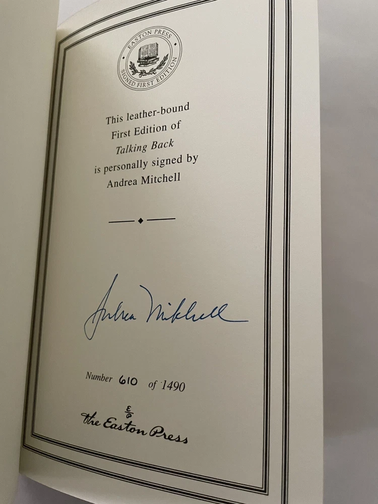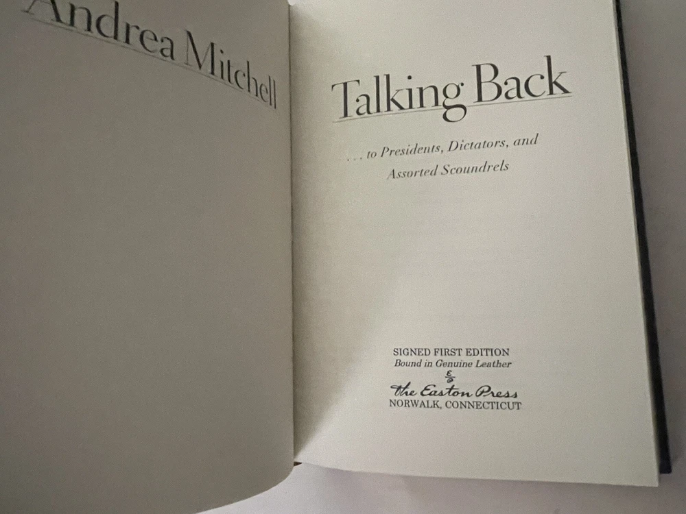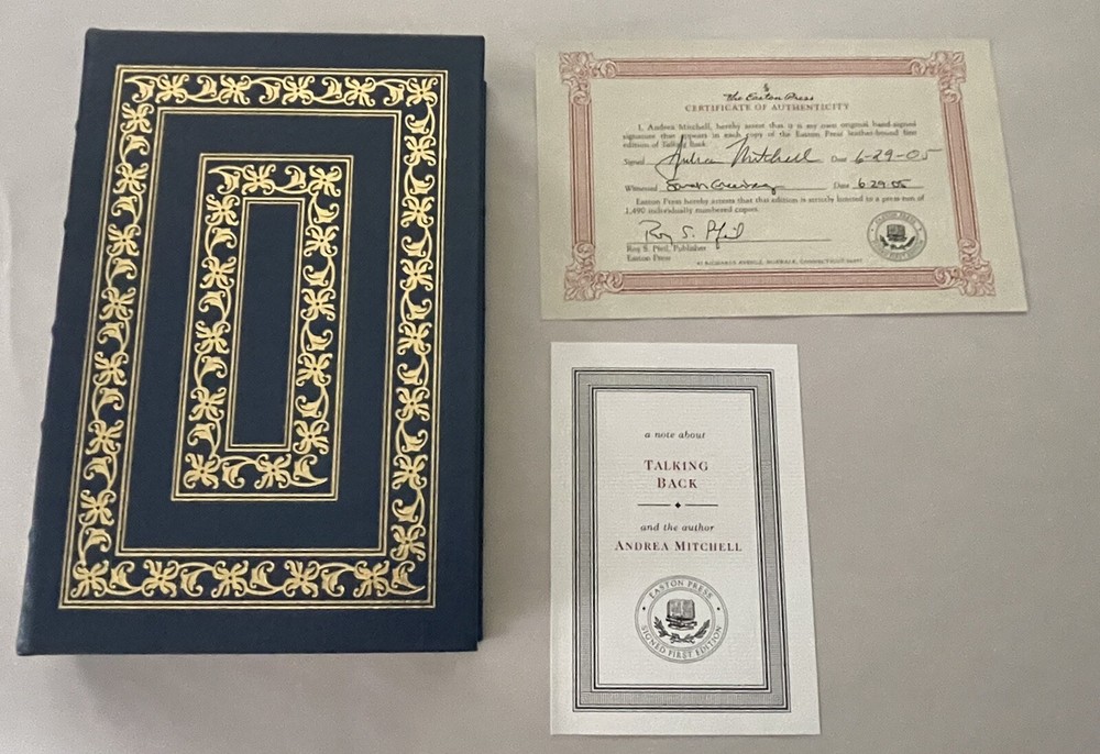 Andrea Mitchell Talking Back Signed First Edition Easton Press leatherbound edition. Book is in near fine condition (faint wear to gilt on page edges).