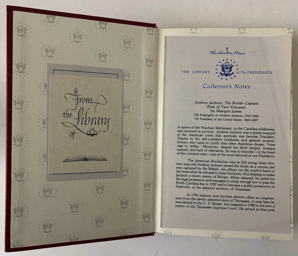 Easton Press - Andrew Jackson The Border Captain- Marquis James Volume 1 in Good condition with blank "From the library of" label covering previous label and includes the Collectors Notes See photos