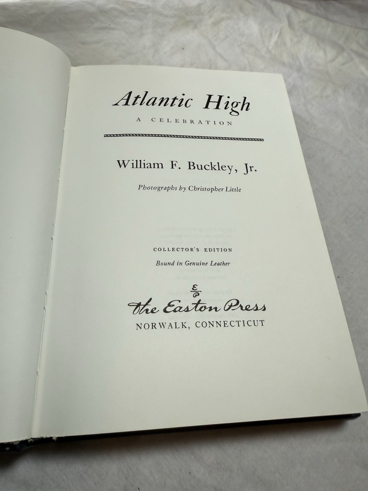 Delve into the captivating world of sailing and personal memoir with "Atlantic High" by William F. Buckley, Jr., a collectible edition published by Easton Press. This English-language biography offers an intimate glimpse into the author's life and experiences, presented in a luxurious leather-bound format that exudes quality and timeless appeal. A treasure for both readers and collectors, this 1987 copyright date book is a testament to Buckley's prowess in storytelling and his adventurous spirit. It's a compelling addition to any literary collection, inviting readers to sail through the author's compelling narratives and insightful reflections.