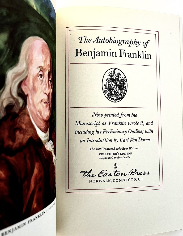 This beautiful collector's edition of Benjamin Franklin's autobiography is a must-have for any book enthusiast. With a leather binding and stunning design, it is the perfect addition to any collection. Written in English, this classic biography is sure to captivate readers with its insights into the life of one of America's founding fathers. The Easton Press edition features special attributes that make it even more unique, including its status as a collector's item. This book is a true treasure for any fan of classics, biography, or history. Don't miss out on the chance to own such a special piece of literature.