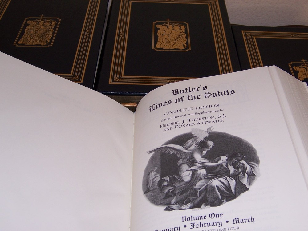 Timeless…inspirational…the definitive stories of Christianity's greatest figures Easton Press BUTLER'S LIVES OF THE SAINTS in 4 volumes COMPLETE EDITION Edited, revised and supplemented by Herbert J Thurston, S.J. and Donald Attwater out-of-print, do not miss out this good deal Copyright by The Easton Press hubbed spine, bound in premium full leathers distinctive cover design, beautiful illustrations handsome, readable typefaces, permanent satin ribbon page marker elegant gilded page edges, endsheets of rich moire fabric thread-sewn pages for durability and strength, long-lasting high quality, acid-neutral paper LIST OF TITLES: a complete series in 4 volumes: 1. Volume One: January • February • March 2. Volume Two: April • May • June 3. Volume Threee: July • August • September 4. Volume Four: October • November • December CONDITION DESCRIPTION: Like new and unread condition, with unattached blank bookplates, binding is tight and gold page edging still shiny, beautiful bright endleaves and satin ribbon page marker. This set could be a precious addition to your family library. SHIPPING / HANDLING: Book(s) will be handled/packed very safely, and shipped via USPS media mail with delivery confirmation.