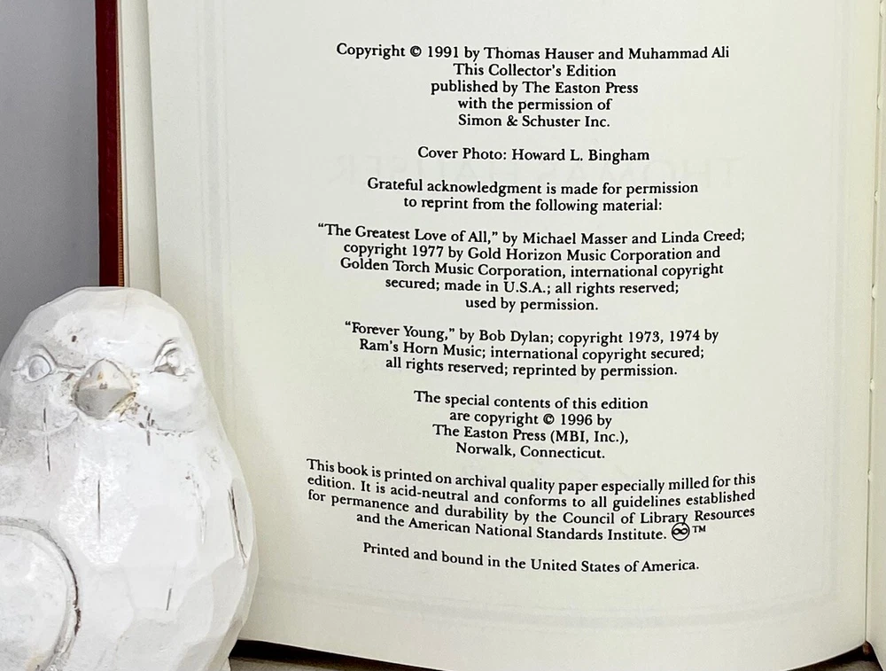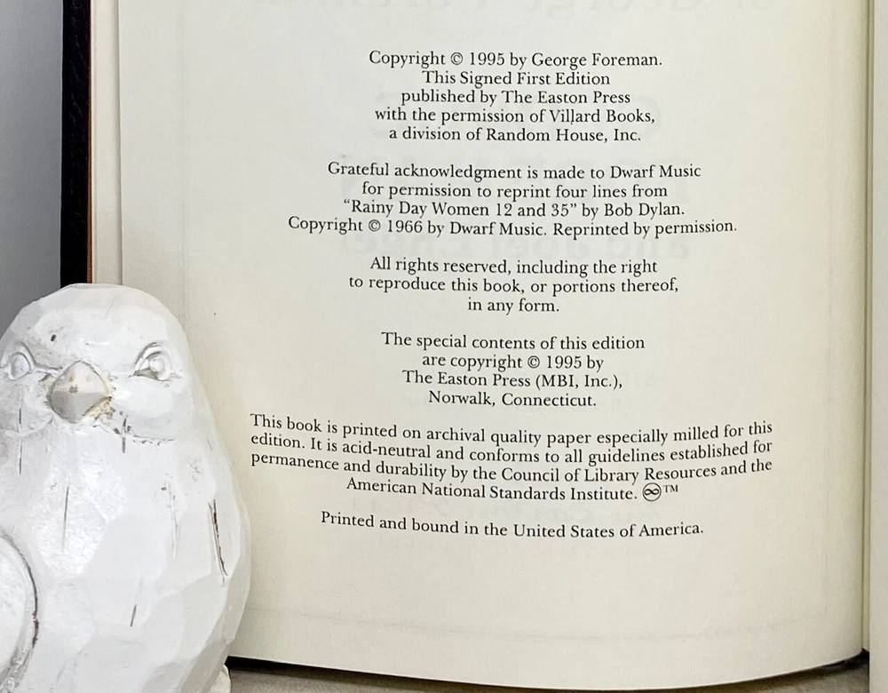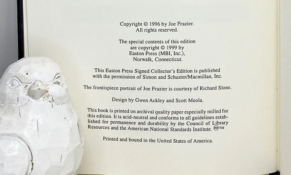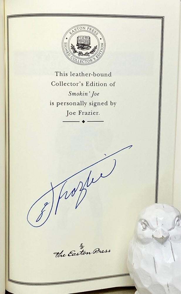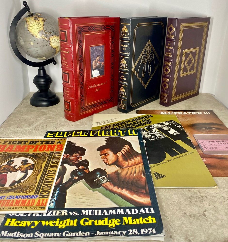 Condit ion and Terms These books are in very good pre-owned condition. There are no attached bookplates or embossed seals. Sharp corners, no obvious scuffs or rubs. Please see all of the photographs of each book for best description. Please review all photos carefully before purchasing, and feel free to ask questions if the photos do not suffice. Also, be sure to check out our other listings at Settembrini’s Selections. Returns are only allowed due to shipping damage or item not being as described. Due to USPS insurance claims procedures, partial refunds are not allowed due to shipping damage. Items damaged in shipping must be returned in the original packaging as received. The USPS requires inspection of the packaging and item damaged. MUHAMMAD ALI In the words of more than 200 of Ali’s family members, opponents, friends, world leaders, and others who have known him best, the real Muhammad Ali emerges: deeply religious, mercurial, generous, a showman in and out of the ring. Thirty years after he burst onto the scene as a gold medal light-heavyweight at the Rome Olympics, Muhammad Ali is still a magical figure. His accomplishments in the ring were the stuff of legend—the two fights with Sonny Liston, when he proclaimed himself “The Greatest” and proved he was; the three epic wars against Joe Frazier; the stunning victory over George Foreman in Zaire; and the shocking loss and final win that made him the first man to win back the heavyweight crown twice, fourteen years after he had first claimed it. Ali’s life has been played out as much on the front pages as on the sports pages. With brilliant immediacy and unprecedented candor, bestselling author Thomas Hauser recreates this extraordinary man. JOE FRAZIER When boxing was bold, bright and glamorous and the fights were the hottest sporting events of the year, Joe Frazier was king as the Heavyweight Champion of the World. From 1970 to 1973 he reigned, and with his career record of 32-4-1 with 27 knockouts and an Olympic gold medal, Frazier leaves little question that he is one of the greatest fighters of all time.Well-known, loved and revered as a gentleman and a fierce competitor in the ring, Joe Frazier at last speaks his mind in Smokin' Joe -- about growing up poor to fighting in the first $2.5 million bout; about the early days of his friendship with Muhammad Ali and how their relationship changed; and about the often corrupt world of boxing and what really went on inside and outside the ring. Packed with stories that no one outside his family knows (such as the reason he was not drafted for Vietnam, his role in Ali's reinstatement, his biggest fear), Smokin' Joe will finally answer all the questions his fans have been wondering about -- his thoughts on George Foreman, Don King and Mike Tyson (among others), his training regimen and fight strategies, and much, much more -- thereby telling the tale of what it takes to be a champion and a legend. His good-hearted nature and uncanny ability to make you laugh come through as he weaves this story in his colorful style that is personable, funny and a real delight. GEORGE FOREMAN- SOLD This autobiography of boxer George Foreman covers his childhood, his boxing days and his religious conversion after leaving boxing a defeated man. Events include the famous Rumble in the Jungle fight with Muhammad Ali and his comback in 1994 to raise money for the Houston Youth Center.