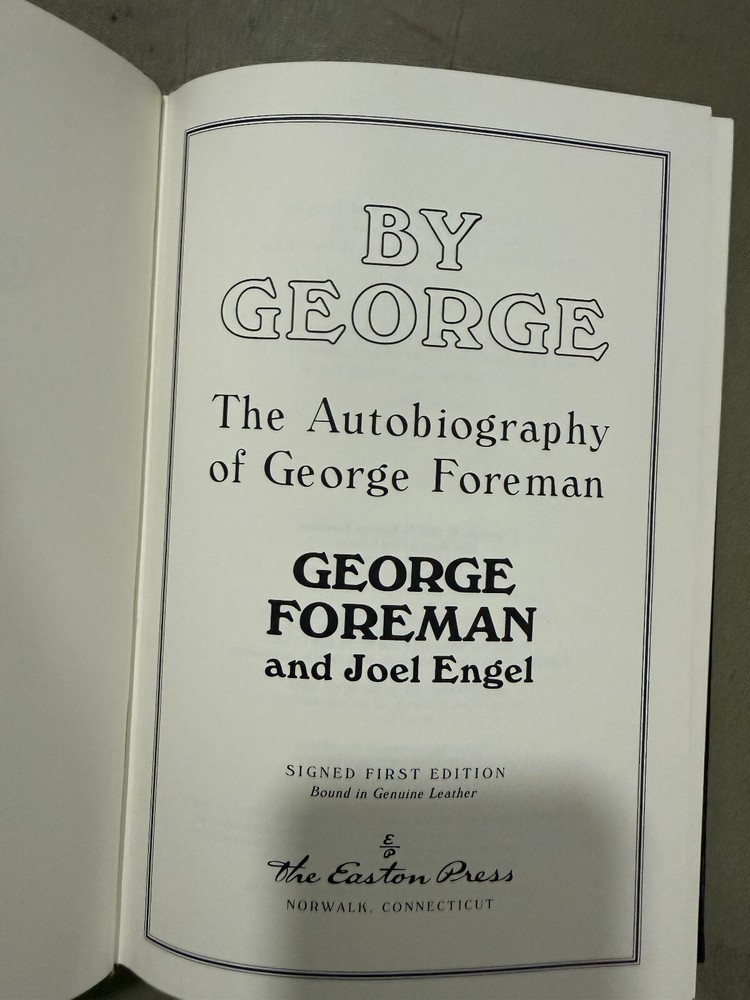 By George : The Autobiography of George Foreman SIGNED Easton Press 1st Editions Very Good Plus Condition ! New Books get listed daily !!! 100s of Easton Press and Franklin Library books available!! All books get cleaned with a leather cleaner to remove any dust, odor and restore the beauty of leather!! Combined Shipping Discount: USA buyers - every book $1 off International combined shipping: 1 or 2 books - $45 3 or 4 books - $75 5 + books $17 per book 10+ books $13 per book WE SHIP DAILY!! RETURNS: Hassle-Free 30-days return policy and we pay for a return !! Check our Inventory (Link to eBay Store): http://stores.ebay.com/EastonFranklinBooks