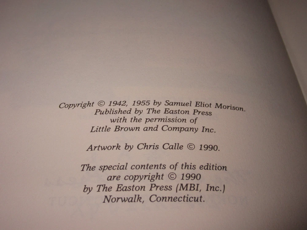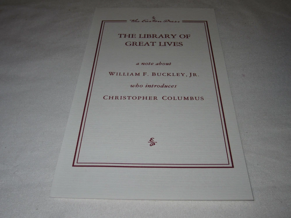 From the Easton Press Library of Great Lives Collection... Christopher Columbus Mariner by Samuel Eliot Morison Copyright 1990 by The Easton Press Bound in Premium Full Leather This volume contains all of the classic Easton Press trimmings: Premium Leather Silk Moire Endleaves Distinctive Cover Design Hubbed Spine, Accented in Real 22KT Gold Satin Ribbon Page Marker Gilded Page Edges Long-lasting, High Quality Acid-neutral Paper Smyth-sewn Pages for Strength and Durability Beautiful Illustrations A very scarce title in any condition, this copy is in Fine condition. The front and back covers are both in near perfect condition and gilded page edges show hardly any wear (see pictures)! There are no markings, or other signs of prior ownership in this book. This book is part of the Easton Press Library of Great Lives Collection. It comes complete with Collector's Notes and would be a beautiful addition to your Easton Press collection. Overall, this copy is a grade collector's book. This book is very elusive in this superior condition, as only a limited number of them were ever published, so now is the time to act. Hopefully you can add this book to your collection and enjoy it in the years to come... Please Email Me With Any Questions You Might Have! Shipping Info: Buyer to Pay Shipping & Handling International Bidders Pay Extra Shipping Good luck and happy bidding!