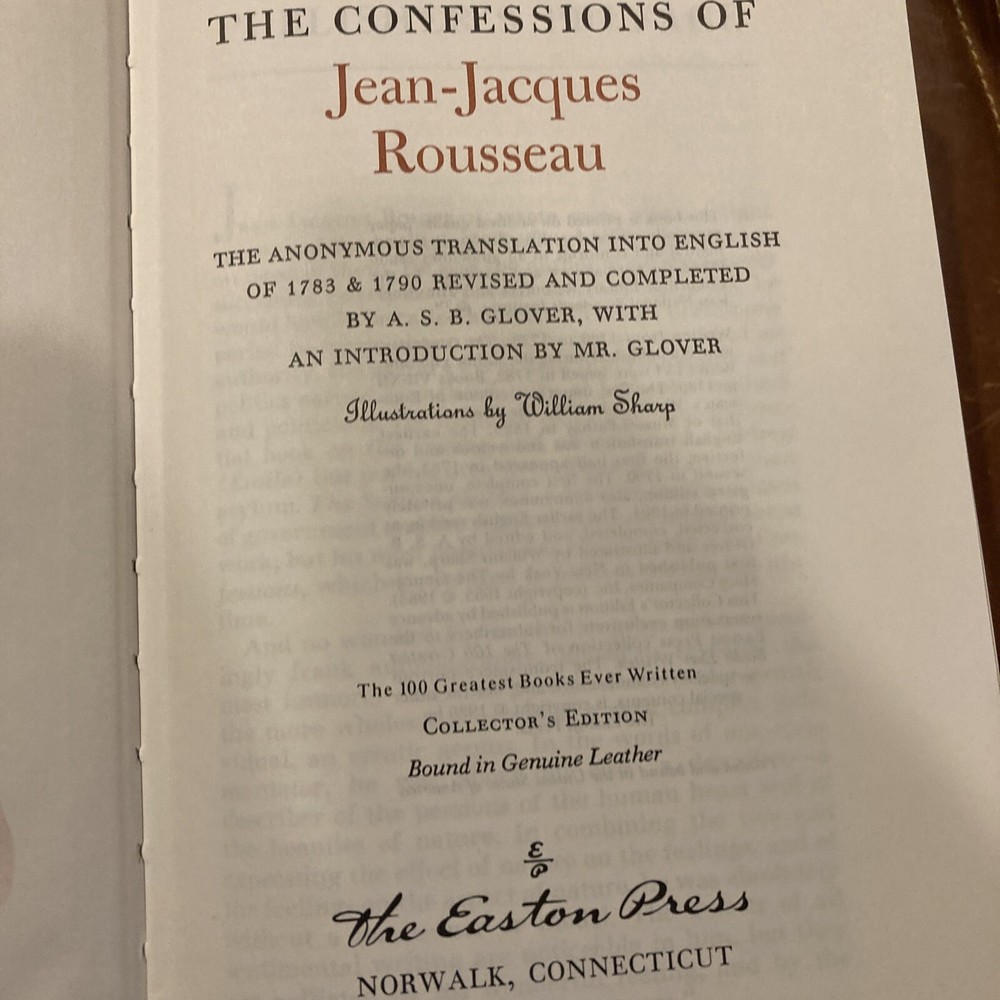 This Easton Press edition of Rousseau's *Confessions* is absolutely stunning! The rich green leather, gold gilding, and silk end leaves make it a collector's dream. The Smyth-sewn binding ensures durability, while William Sharp's illustrations bring Rousseau's introspective masterpiece to life. A true treasure for any bibliophile—elegant, timeless, and in pristine condition.