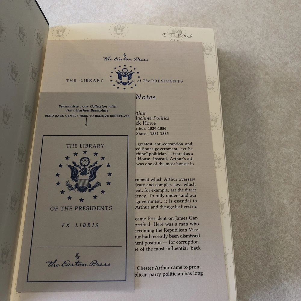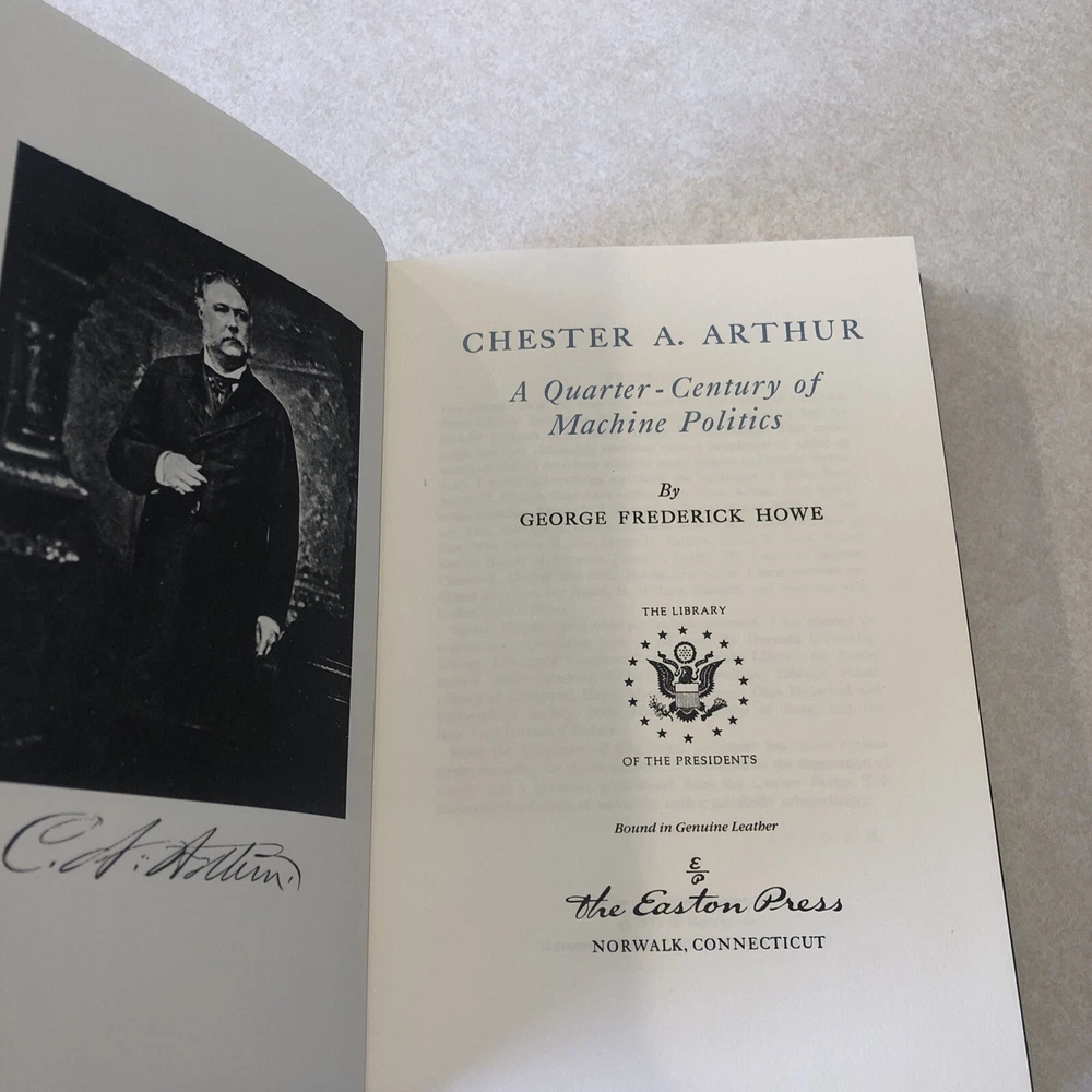 The product is a collector's edition book titled "Easton Press Chester A. Arthur" written by George Frederick Howe in 1987. It is a leather bound book published by Easton Press in the United States. The book falls under the category of historical biography and autobiography, focusing on the topic of Chester A. Arthur, the 21st President of the United States. This original edition is a valuable addition to any collection, featuring English language text and high-quality leather binding.