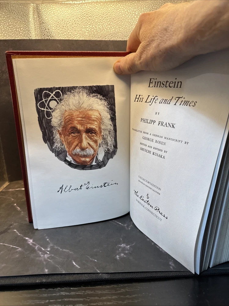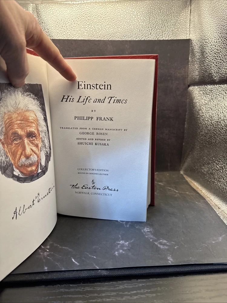 The product is a collector's edition leatherbound book titled "Einstein: His Life and Times" by Philipp Frank. Published by Easton Press in 1988, this first edition book is a valuable addition to any biography and autobiography collection. The book delves into the life and times of Einstein, offering a comprehensive look at his experiences and contributions. With its special attributes and high-quality binding, this edition is sure to be a prized possession for any book collector interested in the works of Einstein.