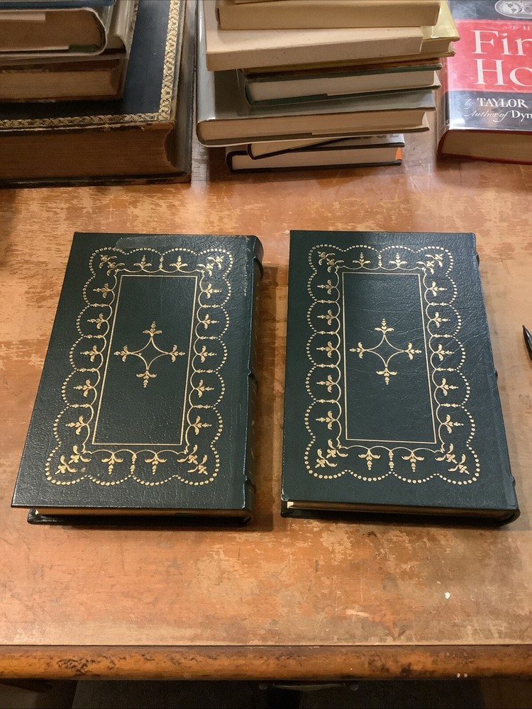 Eleanor and Franklin by Joseph P. Lash. Two volume Easton Press set, 1991. Hardcover bound in leather with gilt page edges and ribbon bookmark. No markings or bookplates. Volume 2 has a small scuff to rear corner.