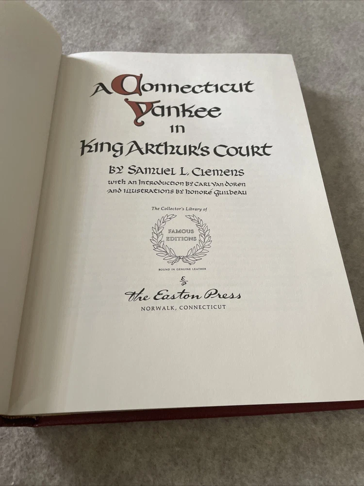 Easton Press Famous Editions A Connecticut Yankee in King Arthur's Court There are no book plates in the book. It comes with the Famous Edition editor's notes. This book is in near mint condition with no wear. The gold on the covers shows very light wear. The end pages show no fading. The gilt on the edge of the pages is in perfect condition. Please see photos. We try to describe as accurately as possible so you will be satisfied with your purchase. We have more books from this set on eBay and we would be happy to combine on shipping to save you money. All books are sent with insurance via USPS Media Mail.