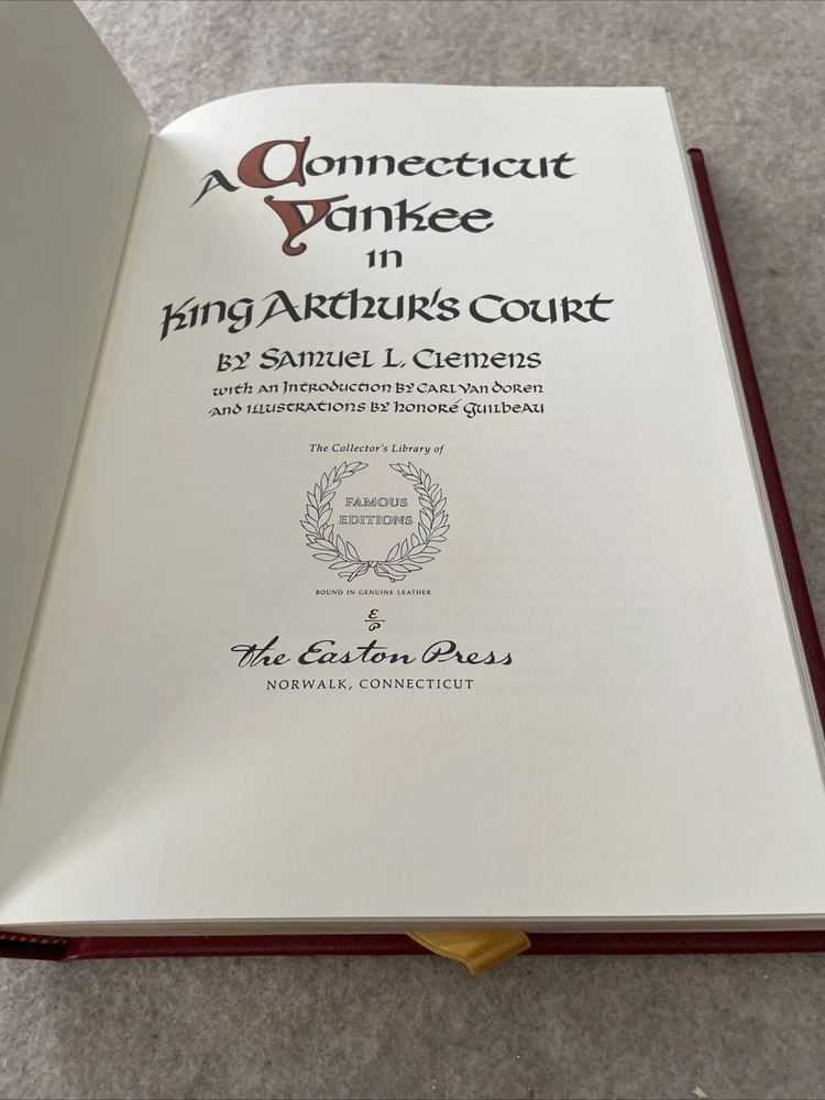 Easton Press Famous Editions A Connecticut Yankee in King Arthur's Court There are no book plates in the book. This book is in near mint condition with no wear. The gold on the covers is like new. The end pages show no fading. The gilt on the edge of the pages is in almost perfect condition with a few light scratches on the side. Please see photos. We try to describe as accurately as possible so you will be satisfied with your purchase. We have more books from this set on eBay and we would be happy to combine on shipping to save you money. All books are sent with insurance via USPS Media Mail.