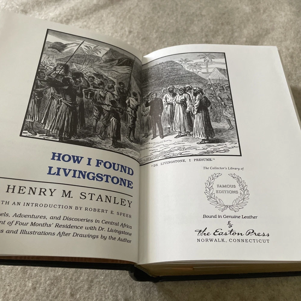 Easton Press Famous Editions How I Found Livingstone by Henry Morton Stanley There are no book plates in the book. It comes with the Famous Edition editor's notes. This book is in near mint condition with no wear. I removed it from its shrink wrap the day I listed it. The shrink wrap was dirty but the book is almost perfect. The gold on the covers shows very light wear. The end pages show no fading. The gilt on the edge of the pages is in perfect condition. Please see photos. We try to describe as accurately as possible so you will be satisfied with your purchase. We have more books from this set on eBay and we would be happy to combine on shipping to save you money. All books are sent with insurance via USPS Media Mail.