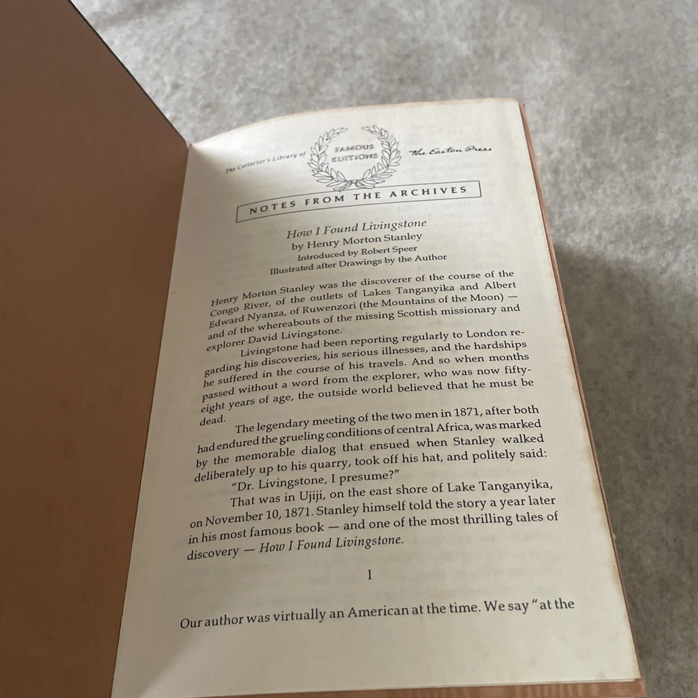 This Easton Press edition of *How I Found Livingstone* is absolutely stunning! The near-mint condition is impressive—minimal wear on the gold covers, pristine gilt edges, and no fading on the end pages. It even includes the editor's notes, making it a fantastic collector's piece. The photos confirm its flawless state—definitely worth adding to any library!