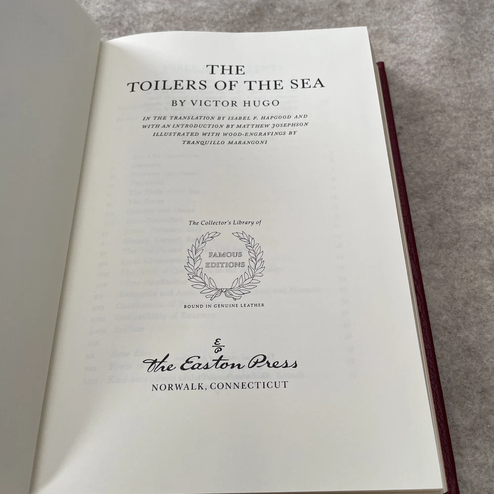 Easton Press Famous Editions The Toilers of the Sea by Victor Hugo There are no book plates in the book. It comes with the Famous Edition editor's notes. This book is in mint condition with no wear. The gold on the covers shows no wear. The end pages show no fading. The gilt on the edge of the pages is in perfect condition. Please see photos. We try to describe as accurately as possible so you will be satisfied with your purchase. We have more books from this set on eBay and we would be happy to combine on shipping to save you money. All books are sent with insurance via USPS Media Mail.
