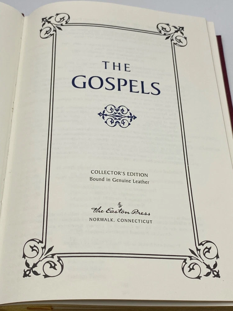 MAKES A GREAT GIFT FOR ANY CHRISTIAN OR BIBLE COLLECTOR ** PLEASE READ : Mahalo for taking the time to look at our listing. We truly appreciate it. We always do our BEST to give you the most accurate description of these beautiful books. If, however, you have any SPECIFIC questions about the SIZE of the book, NUMBER of pages, TYPE of leather, SMELL or FEEL of the book, PLEASE email us through EBay’s mail system BEFORE you bid, and we will be HAPPY to give you more information. We want you to be completely happy with your purchase and keep you as our customers for years to come.** DESCRIPTION: Easton Press’s LONG OUT OF PRINT full-leather binding of the THE GOSPELS. THIS IS A VINTAGE HEIRLOOM EASTON WITH LAVISH GILT IMPRESSIONS TO THE BOARDS AND SPINE. IT IS ONE OF THE MOST HIGHLY-PRIZED EDITIONS OF THIS HOLY BOOK. 🍍 NOT INCLUDED… 😃 ABOUT THE BOOK: The four Gospels that we find in the New Testament, are of course, Matthew, Mark, Luke, and John . The first three of these are usually referred to as the "synoptic gospels," because they look at things in a similar way, or they are similar in the way that they tell the story. CONDITION: Book is in LIKE NEW condition for its age with only a couple of negligible rubs to the gilt page ends (SEE PICS FOR FURTHER DETAIL). NO ATTACHED BOOKPLATES, WRITING FROM PREVIOUS OWNER, ETC. It is a BEAUTIFUL EDITION. SHIPPING: FREE TO US ADDRESSES ONLY. INTERNATIONAL $ based on location. WE SHIP PRIORITY MAIL & I PACK VERY WELL. Please check out our other listings of Easton Press, Franklin Library, Limited Editions Club, Folio Society, International Collectors Library, Heritage Press, and First Edition Library editions. WE DO COMBINE SHIPPING IF YOU PURCHASE MORE THAN ONE COPY. Mahalo for looking at our listings! By bidding/purchasing this item, you are helping a very grateful family who sends you our WARMEST ALOHA & MAHALO!