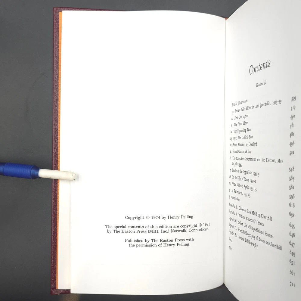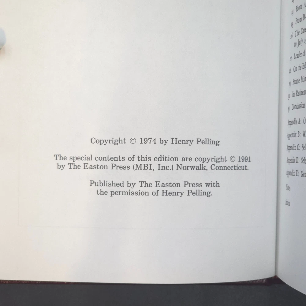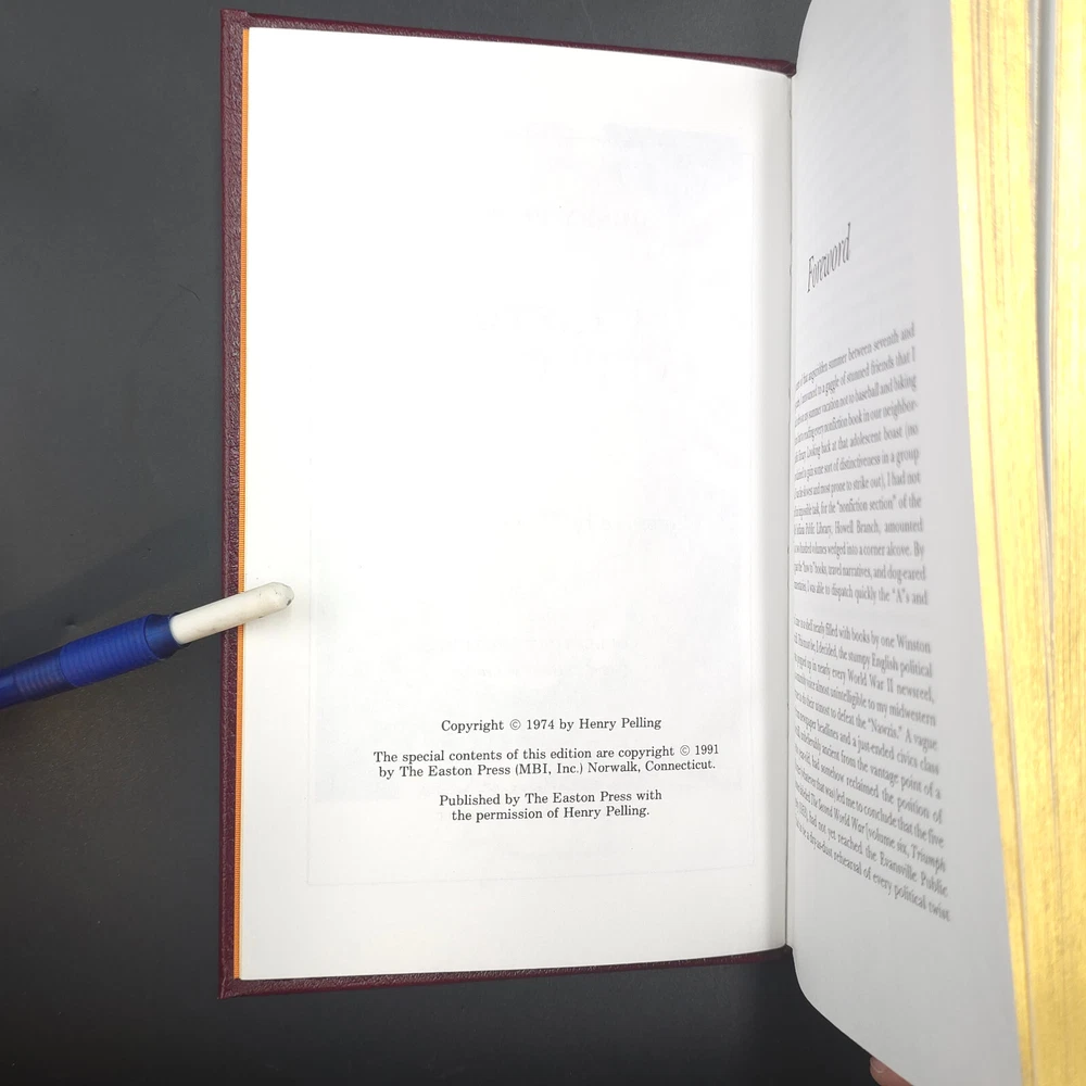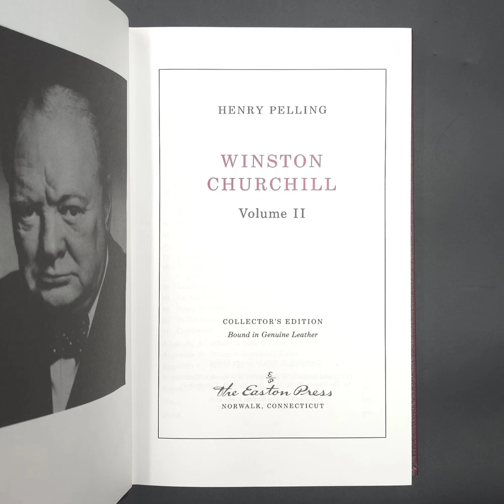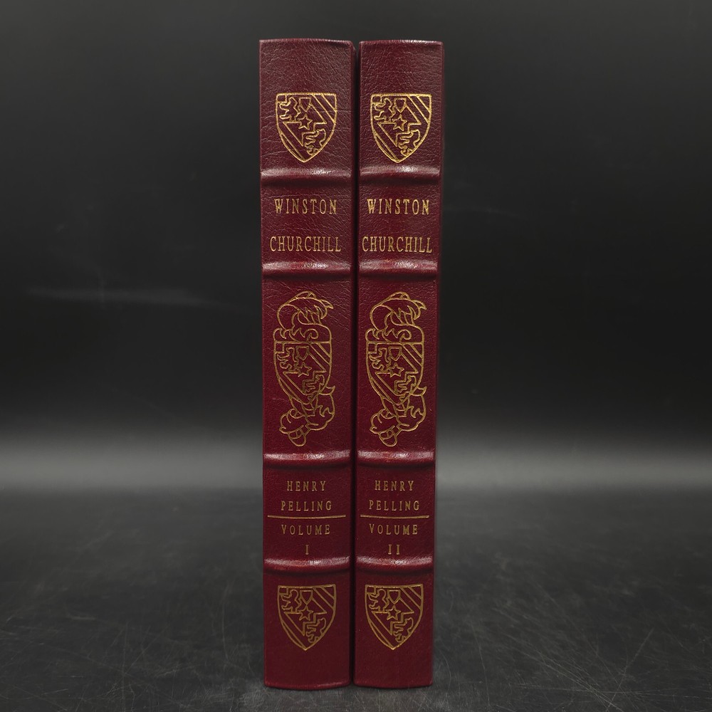 Easton Press Great Lives Winston Churchill by Henry Pelling 2 Vol Leatherbound Leatherbound, Copyright 1974 Great condition for its age. The books have some minor shelf wear and a spot of gilt loss on the page edges in on each volume as shown. Please refer to photos for complete condition.