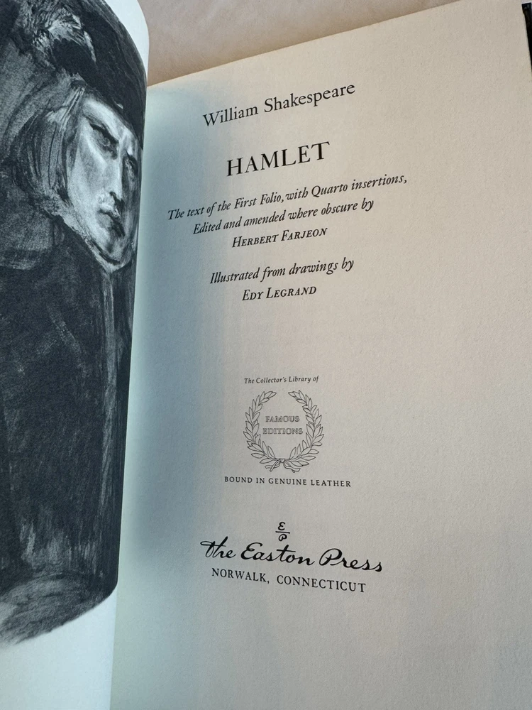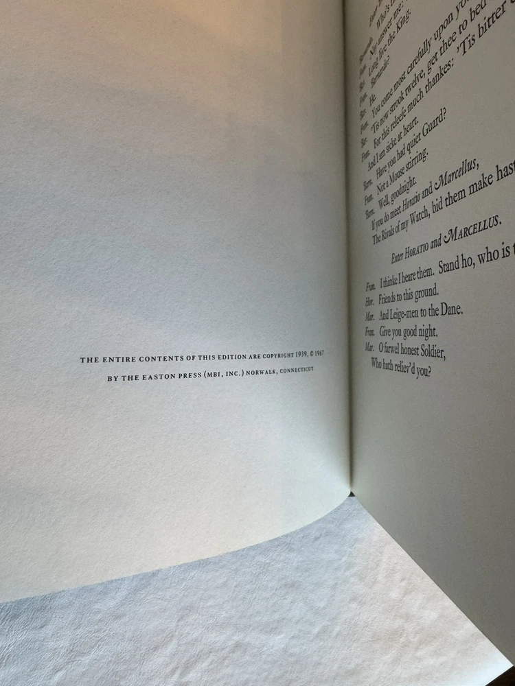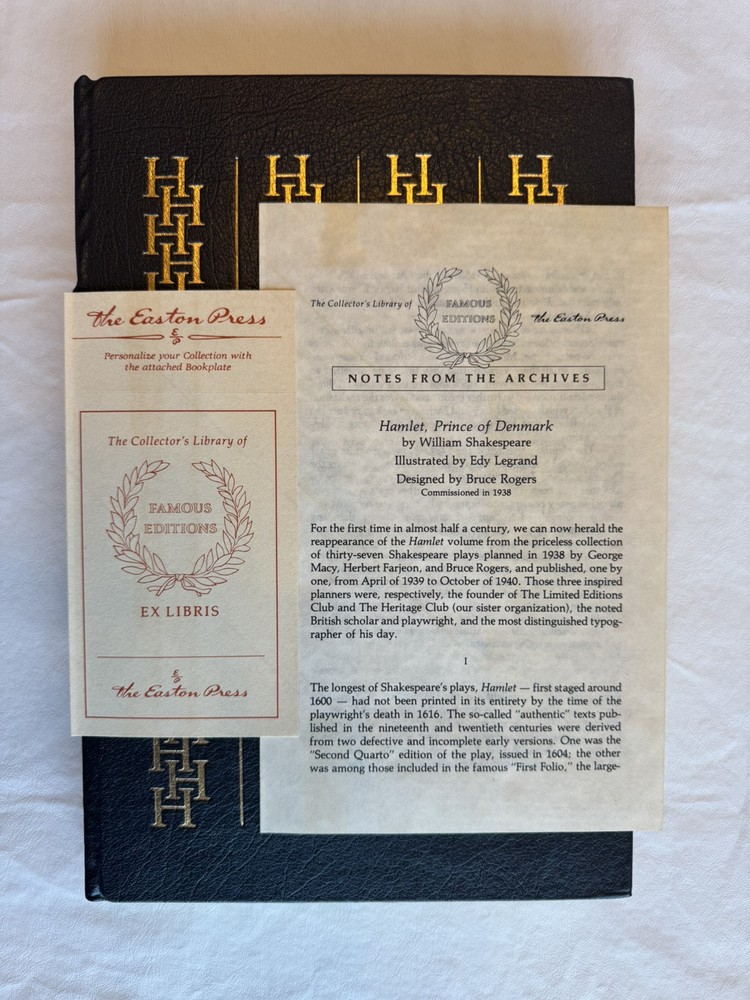 Delve into the depths of Shakespeare's intrigue with the Easton Press HAMLET first edition, a masterfully crafted leather-bound volume that exudes both luxury and timeless appeal. Published in 1967 as part of the Shakespearean collection, this piece boasts the prestige of being a limited edition, making it a coveted item for collectors and literary enthusiasts alike. Every aspect of this reference book reflects the elevated standard of Easton Press, from the intricate leather binding to the meticulous presentation of Shakespeare's renowned work. With its place firmly in the realm of literature's most celebrated masterpieces, it is not just a book but a tangible piece of history that invites readers to experience the drama and complexity of one of literature's most iconic characters.