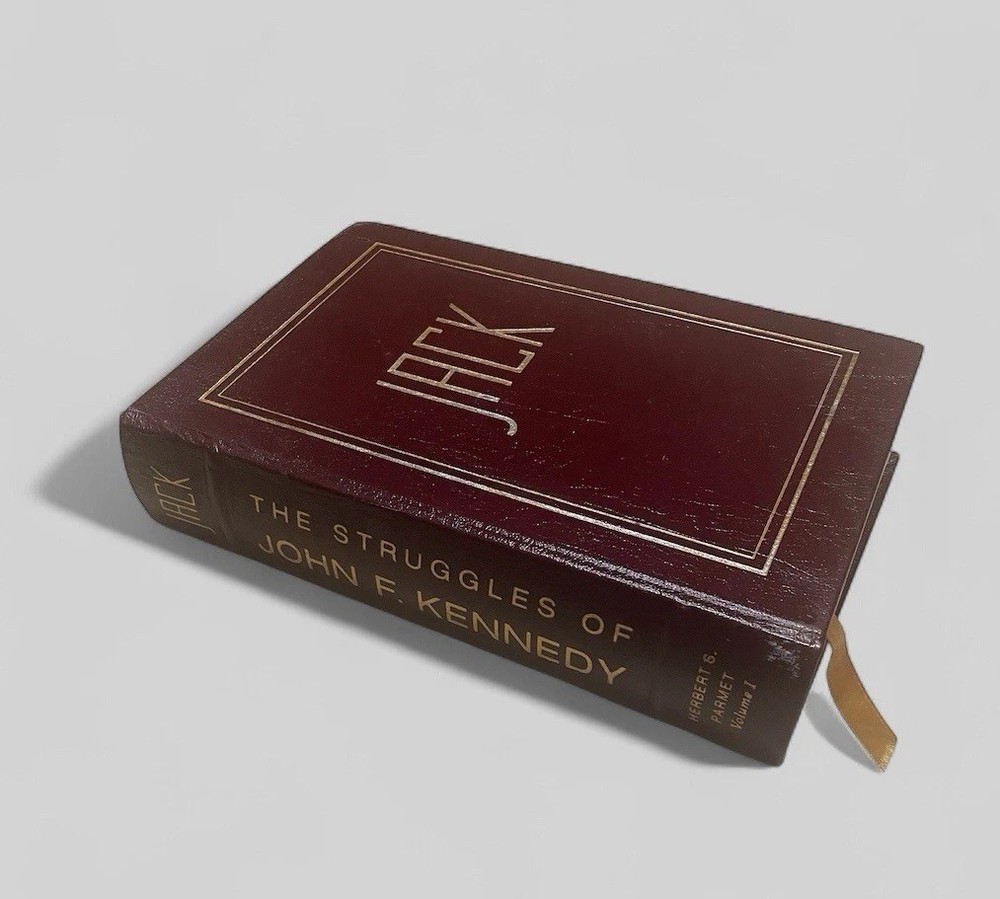 The product is a premium edition book titled "JACK: The Struggles of John F Kennedy Vol 1" by Herbert Parmet. Published by Easton Press, this historical biography is bound in leather, making it a valuable addition to any book collector's library. The detailed account of JFK's struggles throughout his presidency is sure to captivate readers interested in American history and political biographies.