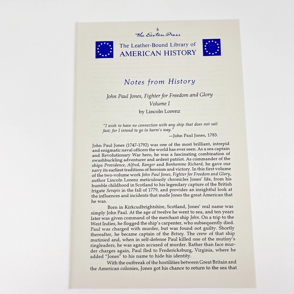 Easton Press John Paul Jones Volume 1 by Lincoln Lorenz. Leather bound hardcover....