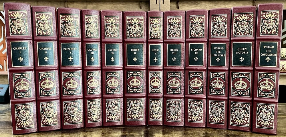 The Easton Press "KINGS & QUEENS OF ENGLAND" 12 vols by Charles Williams is a luxurious collector's edition that delves into the biographies of various English royalty, including Henry, Victoria, Charles, and William. Published in 1995 in Norwalk, CT by Easton Press, this original edition is bound in leather and features special attributes that make it a coveted item for enthusiasts of royalty and historical biographies. This limited edition set is a valuable addition to any collection, offering a comprehensive look into the lives of iconic English monarchs. You will receive the exact item pictured. Item ships in two boxes insured with signature required for delivery. Please reach out with any questions as all sales are final. Thank you for visiting our store!