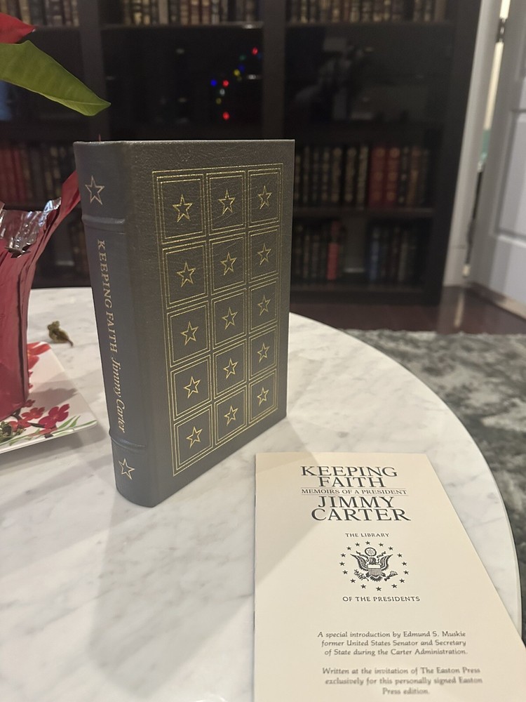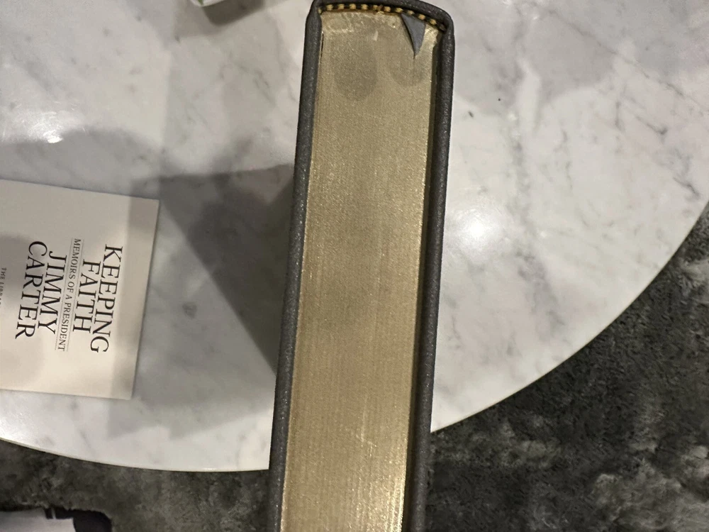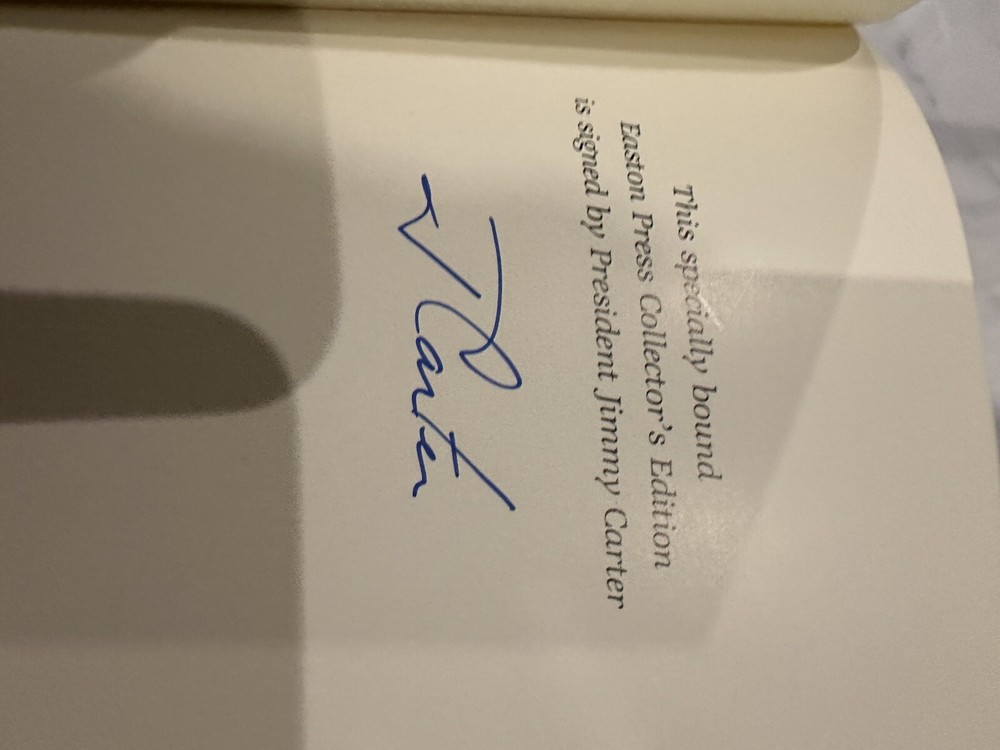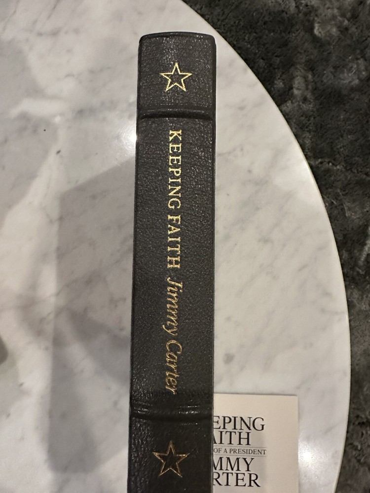 This is an Easton Press leather bound edition of "Keeping the Faith" written and signed by Jimmy Carter. The book is in VG/excellent condition with no notable defects to the leather, gilt, or gilded page edges. There is an attached unsigned bookplate (see last photo).