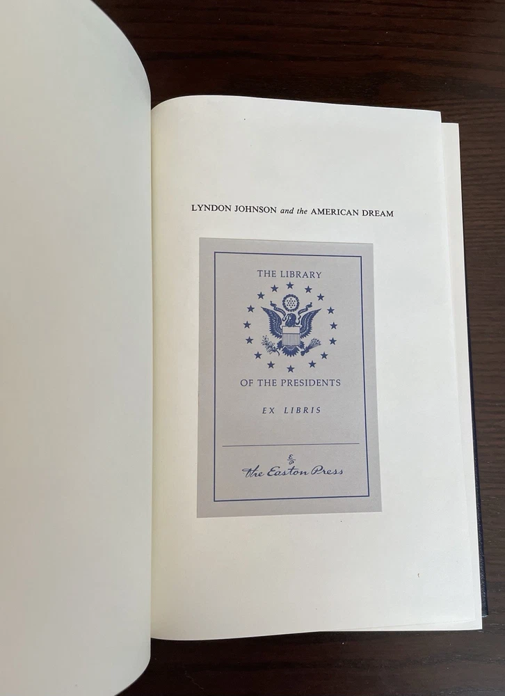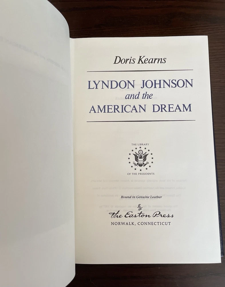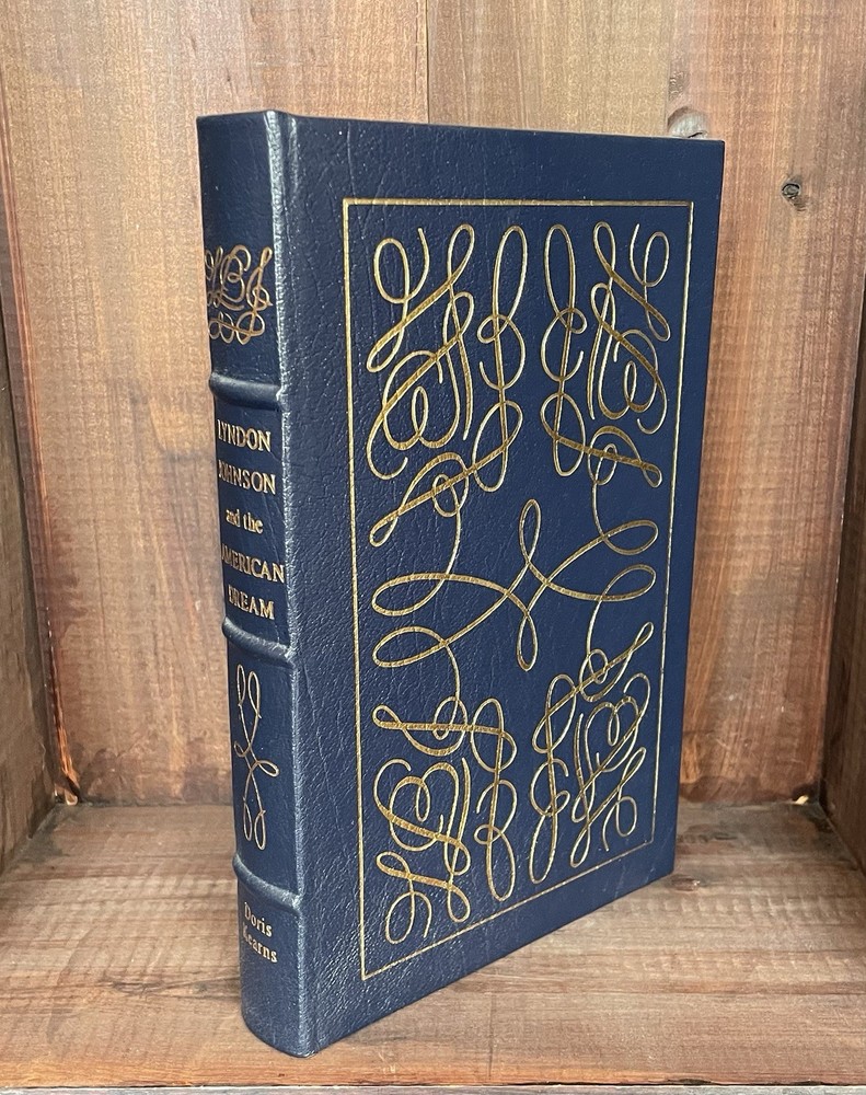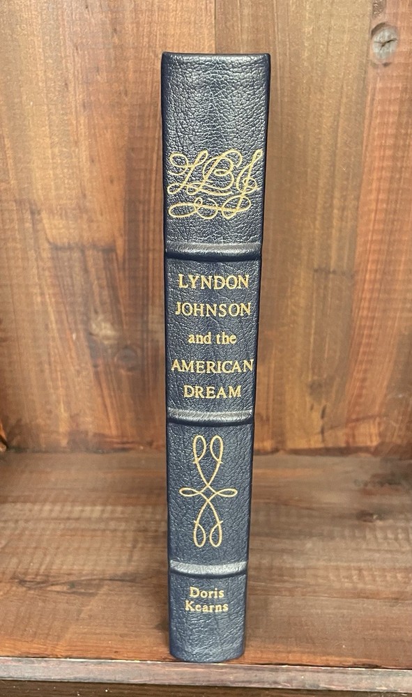 Offering this handsome deluxe leather fine binding edition of Lyndon Johnson and the American Dream by Doris Kearns. Easton Press, 1987. Collector's Edition, The Library of the Presidents. Full leather hardcover decorated with 22k gold, and gold page edges, and attached ribbon page marker and blank Easton Press book plate. Clean and unmarked with light wear. Nice copy!