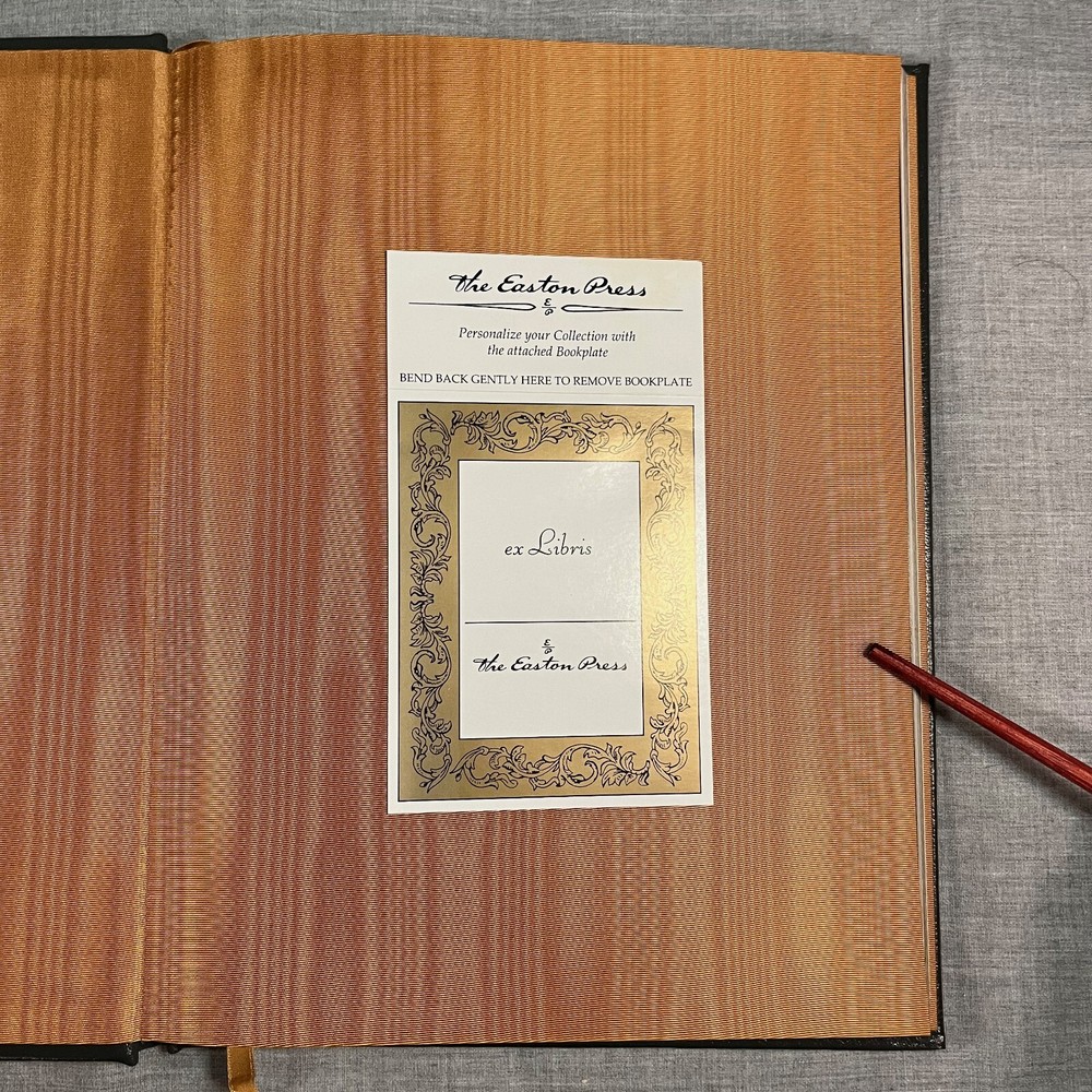 New, loose bookplate included, as shown. Aside from some faint shelf-wear near hinges , and light scuffs on glossy front slick , as shown, this book is in immaculate, gorgeous condition. Marker ribbon. Leatherette-bound in typical Easton Press fashion. Please examine photos carefully, as they are an integral part of the condition description of this rare volume. NOTE: -We do not deface our books with inventory stickers. -Your purchase will ship in a protective mailer (corrugated cardboard and/or padded mailer), NOT in a bare plastic bag. ----------------------------------------- Thank you for visiting MontanaVTG Our family are passionate readers, listeners, and collectors of great books, records, and CDs... and sensuous gadgeteers who put our vintage machines to daily use. Based in Montana, we pack your items by hand with extreme care, and offer the fastest, most professional shipping options available. We want you to be happy with your purchase, and will bend over backwards to work with you if there's a problem. Thanks for checking out our wares! [230930]