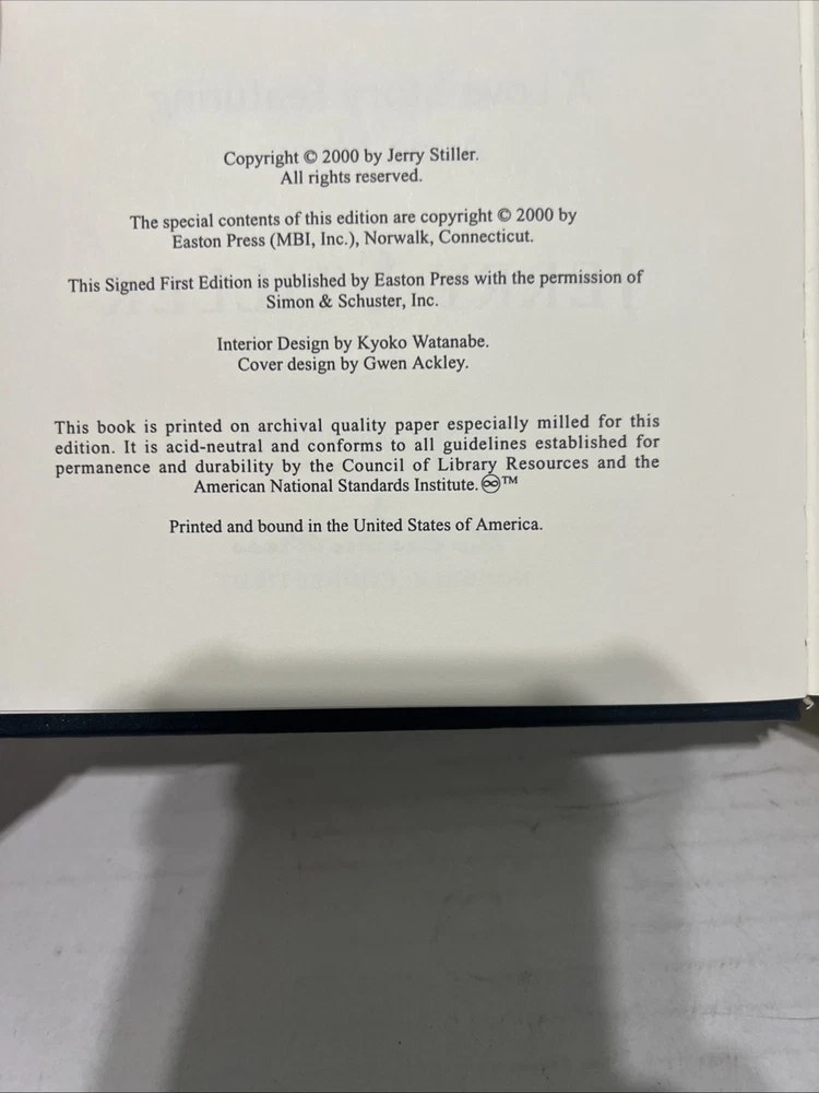 Delve into the comedic genius of Jerry Stiller with the Easton Press Leather Signed First Edition of "Married to Laughter." This collectible biography, published in 2000, offers an intimate look into the life and career of the renowned actor and comedian. Each copy comes with a Certificate of Authenticity, ensuring the signature's validity and the book's value as a collectible. Crafted with care in Connecticut, this unit is a testament to the art of bookmaking, featuring a sleek leather binding that exudes sophistication. The book is a treasure for enthusiasts of autobiography and biography, signed by the author himself, adding a personal touch to this literary piece. With its original print and English language, it's a must-have for both collectors and fans alike.