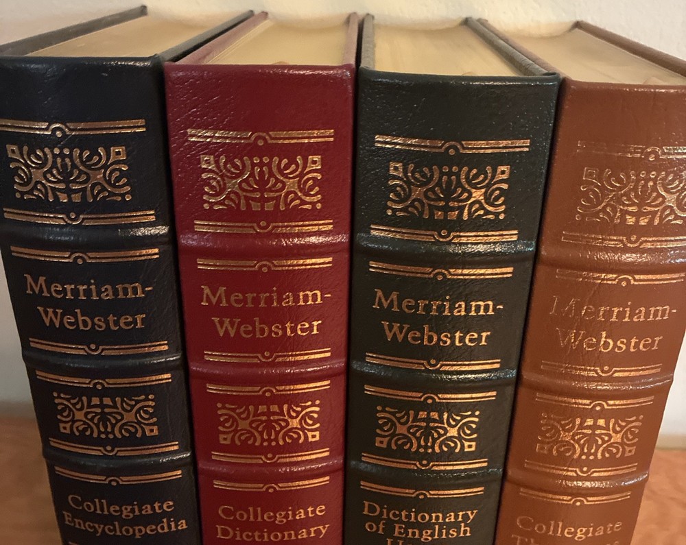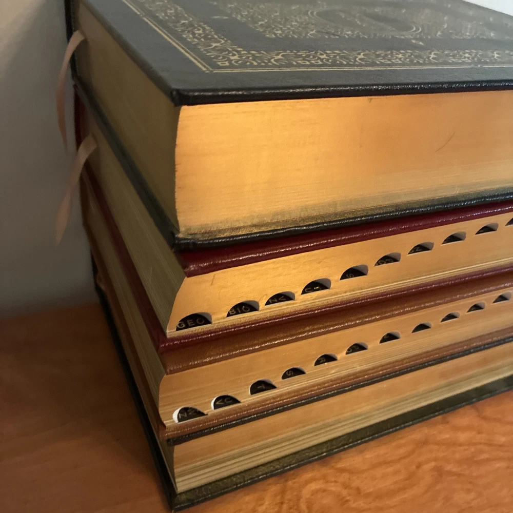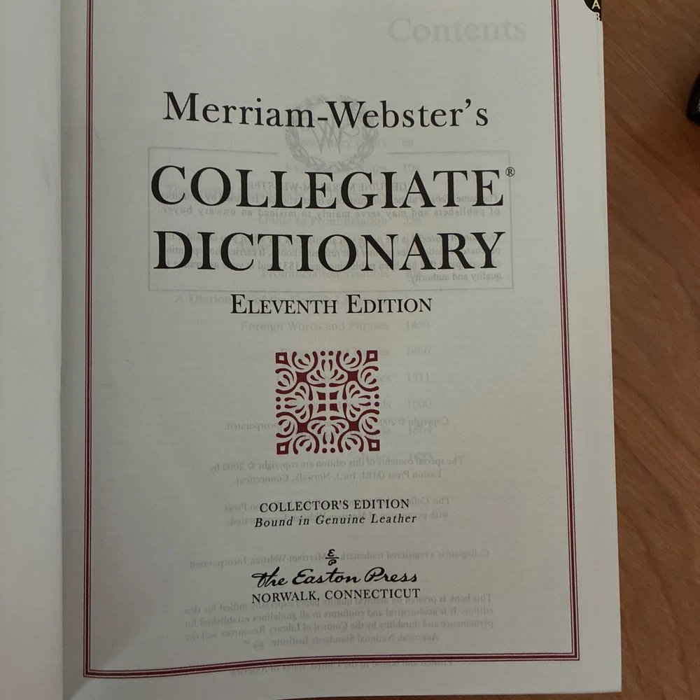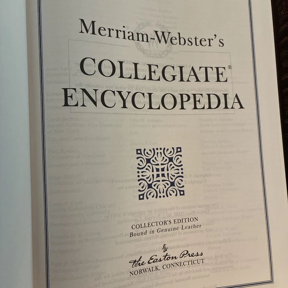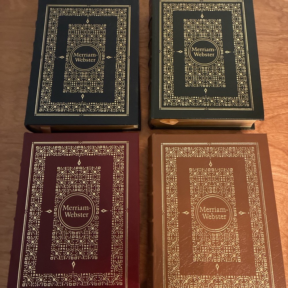 The Easton Press Merriam-Webster Collegiate 4-Volume Set is a prestigious and comprehensive dictionary and thesaurus collection, perfect for collectors and language enthusiasts. Crafted with a luxurious leather binding, this set is a timeless addition to any bookshelf, showcasing the quality and craftsmanship of the United States publisher, Easton Press. With its special collector's edition status and inclusion of essential vocabulary resources, this set is a must-have for those seeking a reliable and elegant reference guide in English language. From a large estate of 1,000 Easton Press leather books being listing over next several weeks reasonably priced!! Non smoking & pet free estate. It has a bookplate in front - blank & not signed/filled out. It has NO previous owner signature in front page, see pic. Very nice Mint condition as are most books from this collection. Never read. They are all from 1 estate, see pics.