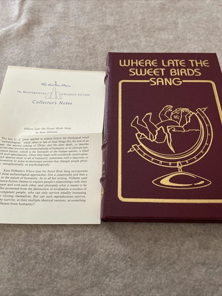 Easton Press Masterpieces of Science Fiction Series Where Late the Sweet Birds Sang by Nate Wilhelm There are no book plates in the book. It comes with the collector's notes This book is in near mint condition with no wear. The gold on the covers shows no wear. The end pages show no fading. The gilt on the edge of the pages is in almost perfect condition with a light scratch on the side. Please see photos. We try to describe as accurately as possible so you will be satisfied with your purchase. We have more books from this set on eBay and we would be happy to combine on shipping to save you money. All books are sent with insurance via USPS Media Mail.