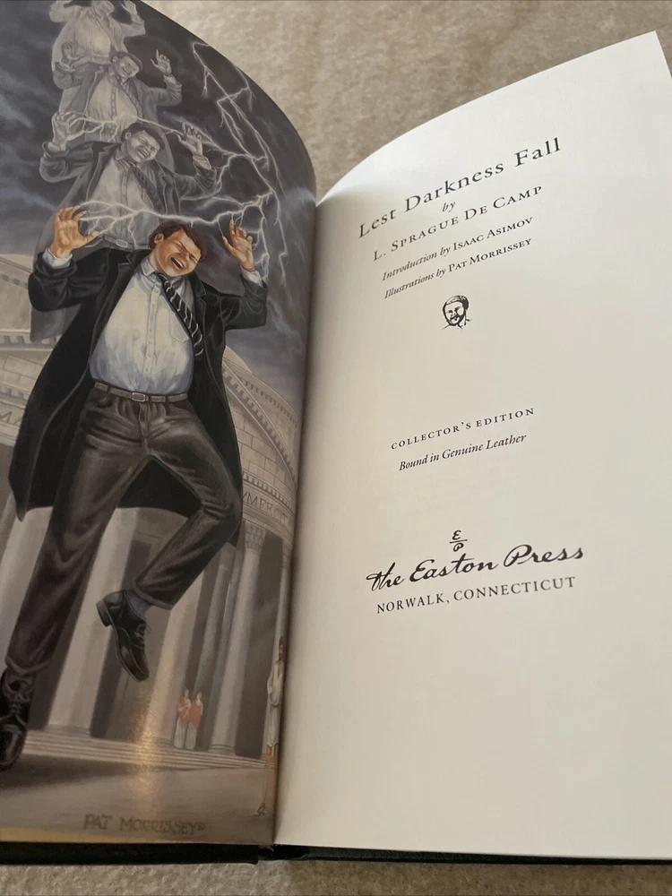 Easton Press Masterpieces of Science Fiction Series Lest Darkness Fall by L. Sprague de Camp There are no book plates in the book. It comes with the collector's notes This book is in mint condition with no wear. The gold on the covers shows no wear. The end pages show no fading. The gilt on the edge of the pages is in perfect condition. Please see photos. We try to describe as accurately as possible so you will be satisfied with your purchase. We have more books from this set on eBay and we would be happy to combine on shipping to save you money. All books are sent with insurance via USPS Media Mail.