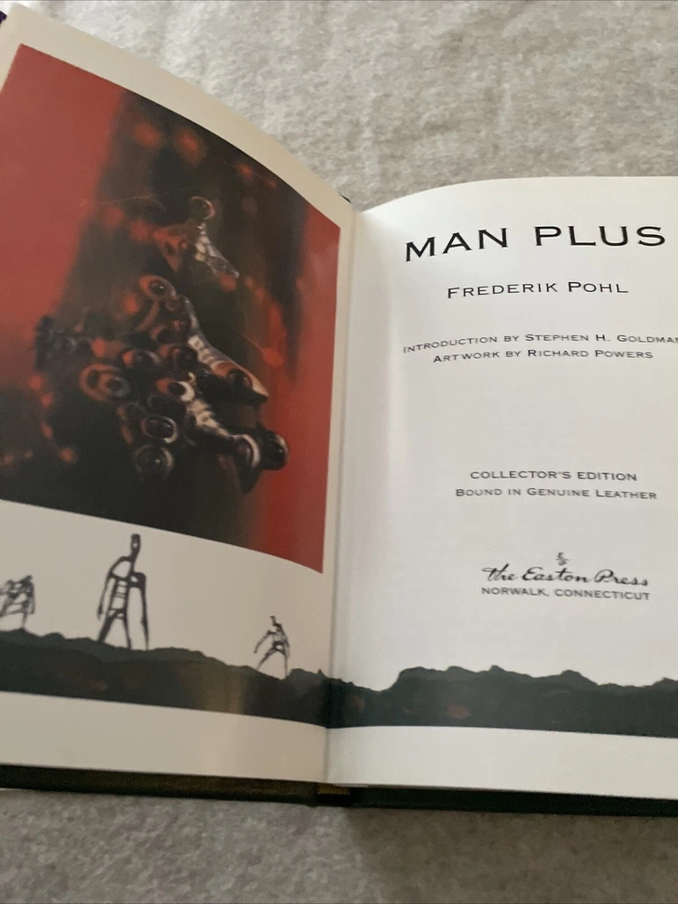 Easton Press Masterpieces of Science Fiction Series Man Plus by Frederik Pohl There are no book plates in the book. It comes with the collector's notes This book is in mint condition with no wear. The gold on the covers shows no wear. The end pages show no fading. The gilt on the edge of the pages is in perfect condition. Please see photos. We try to describe as accurately as possible so you will be satisfied with your purchase. We have more books from this set on eBay and we would be happy to combine on shipping to save you money. All books are sent with insurance via USPS Media Mail.