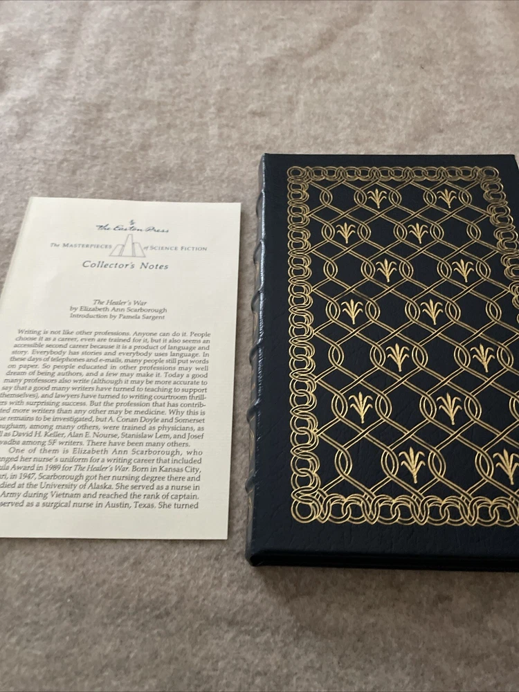 Easton Press Masterpieces of Science Fiction Series The Healer's War by Elizabeth Ann Scarborough There are no book plates in the book. It comes with the collector's notes This book is in near mint condition with no wear. The gold on the covers shows no wear. The end pages show no fading. The gilt on the edge of the pages is in almost perfect condition with a light scratch on the bottom and top. Please see photos. We try to describe as accurately as possible so you will be satisfied with your purchase. We have more books from this set on eBay and we would be happy to combine on shipping to save you money. All books are sent with insurance via USPS Media Mail.