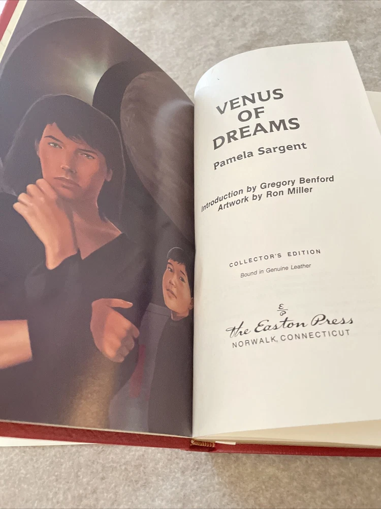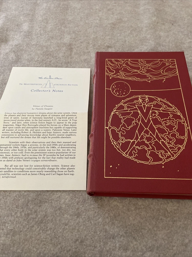 Easton Press Masterpieces of Science Fiction Series Venus of Dreams by Pamela Sargent There are no book plates in the book. It comes with the collector's notes. This book is in near mint condition with no wear. The gold on the covers shows no wear. The end pages show no fading. The gilt on the edge of the pages is in almost perfect condition with a tiny scratch on the side. Please see photos. We try to describe as accurately as possible so you will be satisfied with your purchase. We have more books from this set on eBay and we would be happy to combine on shipping to save you money. All books are sent with insurance via USPS Media Mail.