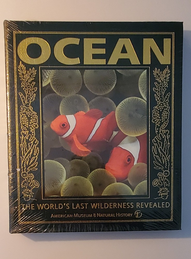 Easton Press full-leather binding OUT OF PRINT Edition of OCEAN: THE WORLD’S LAST WILDNERNESS, introduced by FABIEN COUSTEAU. T HIS EASTON EDITION HAS LAVISH GILT IMPRESSIONS TO THE BOARDS AND SPINE. The Book is in new condition and still in the manufacturer's original plastic wrap. There are 2 very small tears in the plastic wrap (one on the corner and one on the foredge), but other than that, the book is new and in gift condition. The book will be shipped via USPS Media Mail and delivered with a signature confirmation. Thanks for looking