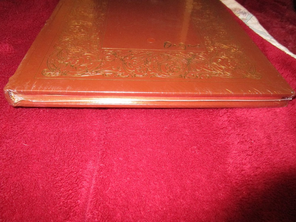 Books from Easton Press LIKE NEW NEVER READ Bound in premium leathers, distinctive cover design, hubbed spine accented in 22-karat gold Endsheets of rich moire fabric, permanent satin ribbon page marker Thread sewn pages for strength and durability, gilded page edges for beauty and protection Handsome readable typefaces, beautiful illustrations, archival-quality acid-neutral paper
