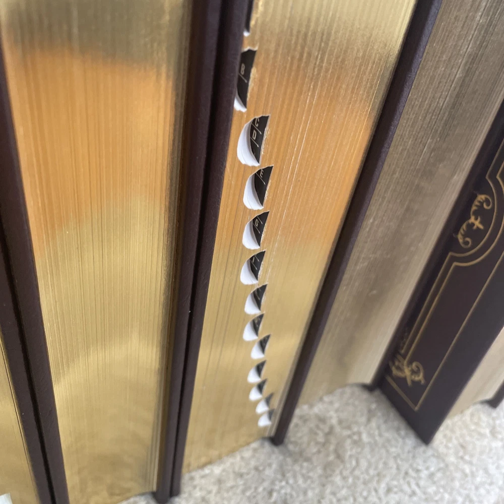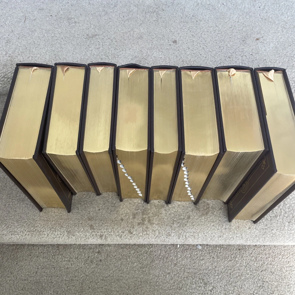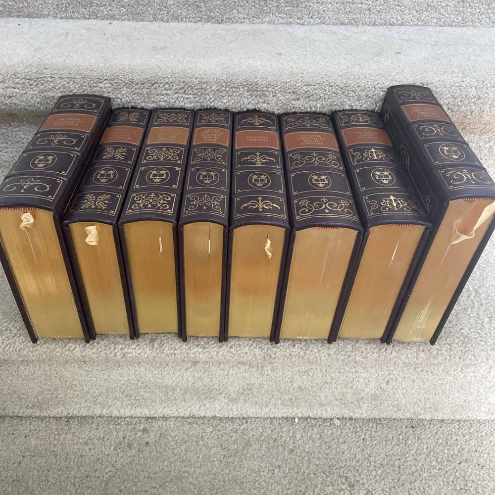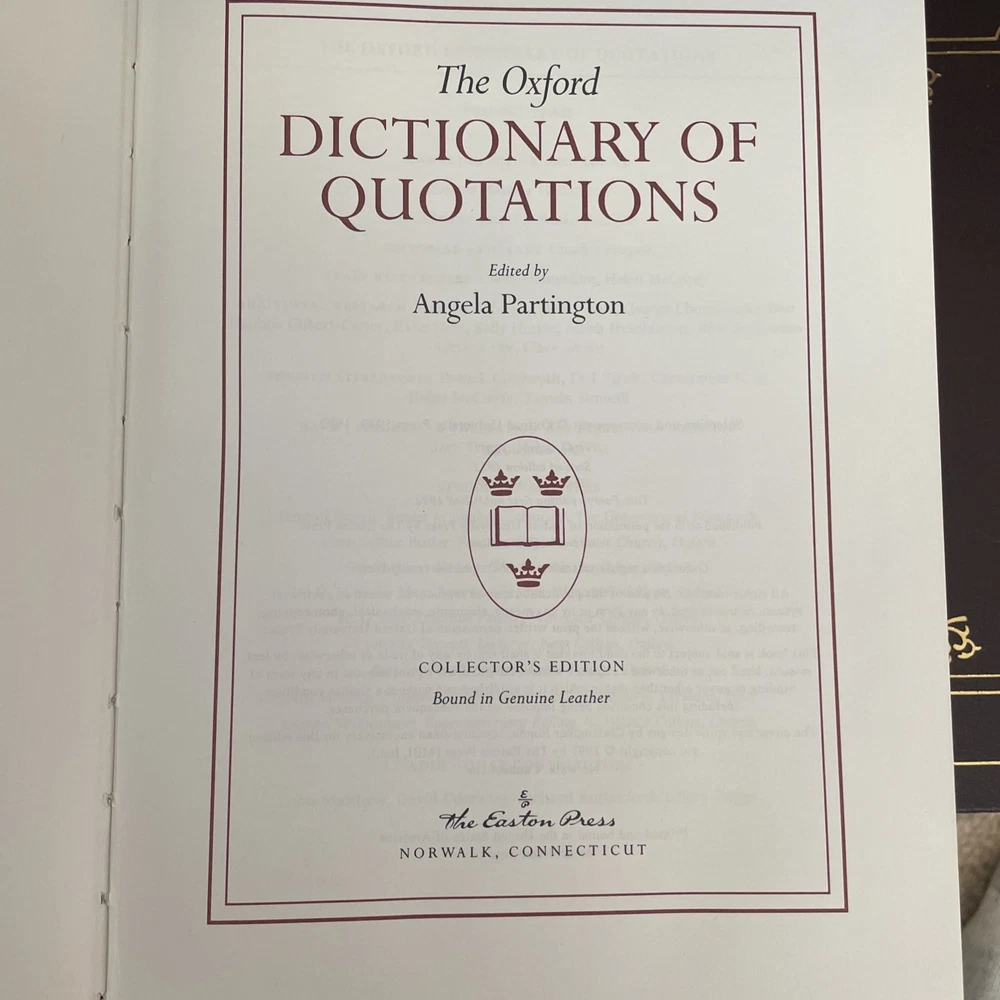 Easton Press Collector's Edition 8 Volumes of Oxford Dictionaries, Companions, etc., to include: The Concise Oxford Dictionary The Oxford Thesaurus The Oxford Companion to American Military History The Oxford Dictionary of Quotations Oxford - Fowler's Modern English Usage The Oxford Companion to English Literature The Oxford Companion to American Literature The Oxford Companion to Classical Literature The book is full leather. There are no bookplates in the book. This books are in near mint condition with no wear. The gold on the covers looks like new. The end pages show no fading. The gilt on the edge of the pages is in almost perfect condition with only a couple scratches to be found and a little shelf wear to the gilt on the corners of a couple volumes. Please see photos. We try to describe as accurately as possible so you will be satisfied with your purchase. We have more books from this set on eBay and we would be happy to combine on shipping to save you money. All books are sent with insurance via USPS Media Mail.