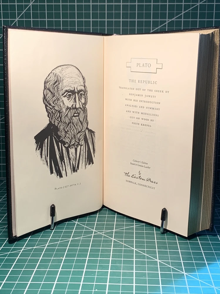 Easton Press PLATO: THE REPUBLIC ~ From The Books That Changed The World Collection ~ Very fine. Scarce 1980 title. Does not belong to the 100 Greatest Books Ever Written.