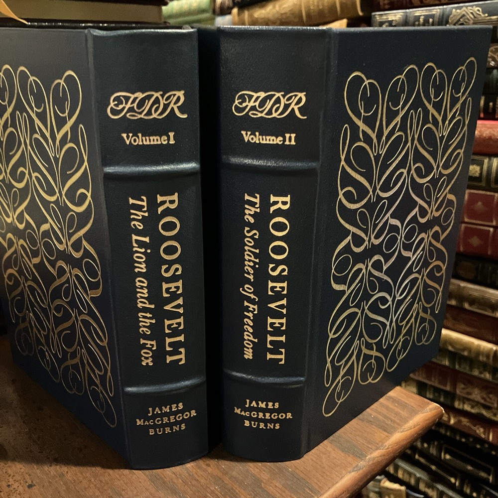 This Easton Press collector's edition is absolutely stunning! The navy blue leather binding, gold gilding, and Smyth-sewn craftsmanship make it a true treasure for history lovers. Burns' masterful biography of FDR comes alive in these beautifully preserved volumes—perfect for any serious collector or admirer of presidential history. The near-fine condition and included collector's note add even more value. A must-have for anyone passionate about the New Deal era or Easton Press editions!