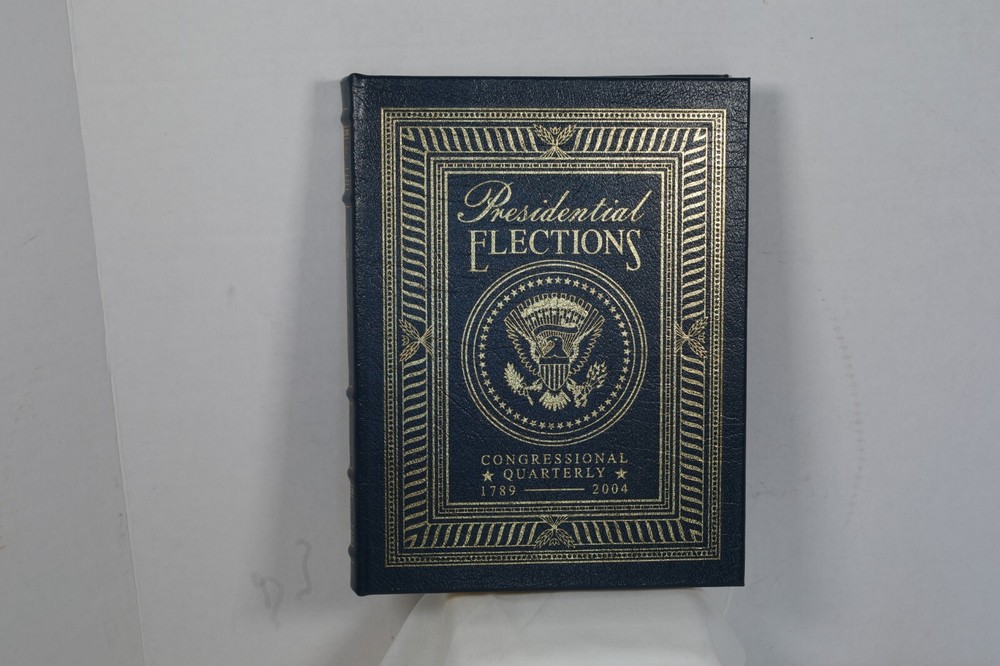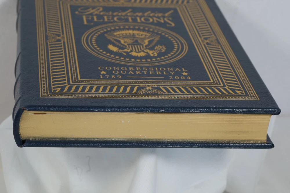 You are looking at PRESIDENTIAL ELECTIONS CONGRESSIONAL QUARTERLY 1789-2004 Beautiful leather bound Collector's Edition was published by Easton Press in 2005. The condition of the book is "Good" condition. Some edge gilt lost and some painting on the cover as I tried to show on my pictures Please ask questions before buying it. Take a look at my other Easton Press books. I'll combine shipping. Check my feedback and bid with confidence. PAYMENT POLICY If you have feedback of less than 5, please contact me before buying.