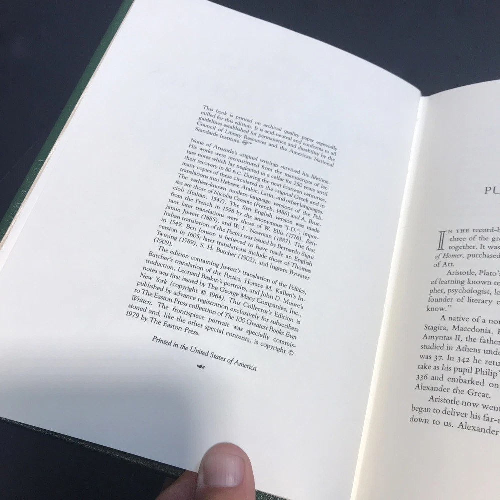 Easton Press Politics and Poetics Aristotle 100 Greatest Series. Shipped with USPS Media Mail.
