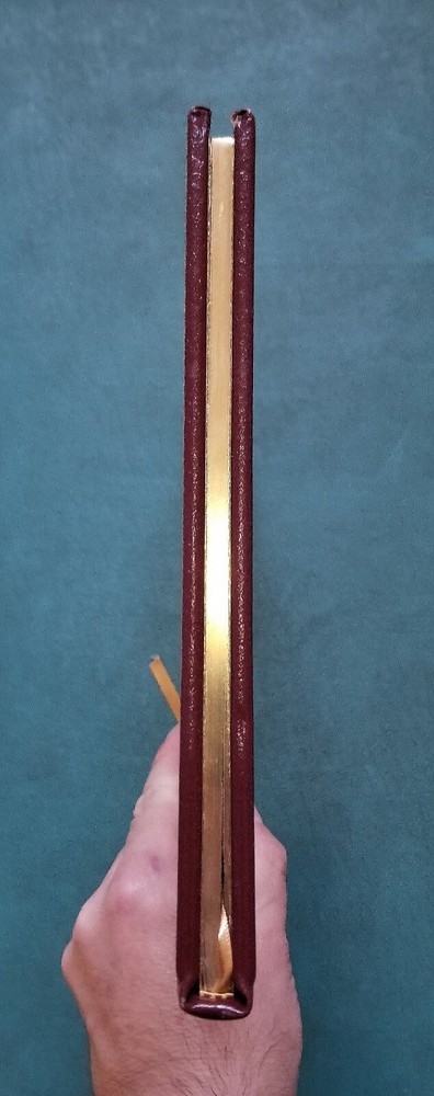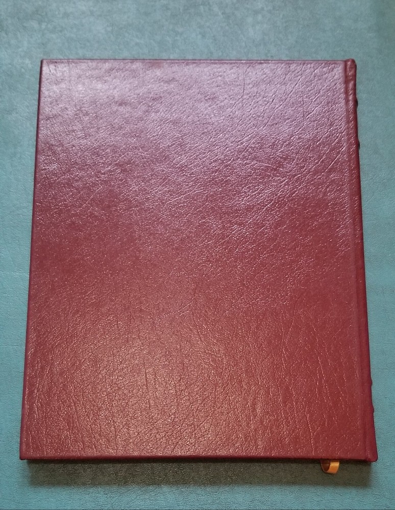 Original oversized genuine leather bound hardcover with gilt titles/decorations/page edges and silk ribbon marker/moire endpapers is complete and in very good condition with no writing, tears or major creases. Minor wear to cover including light rubbing and light bumping to some corners/edges. Binding tight and pages clean with no unpleasant odors. Scarce and collectible!
