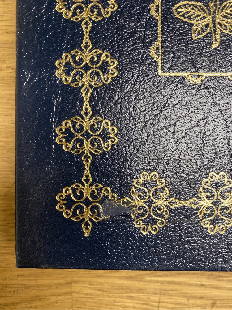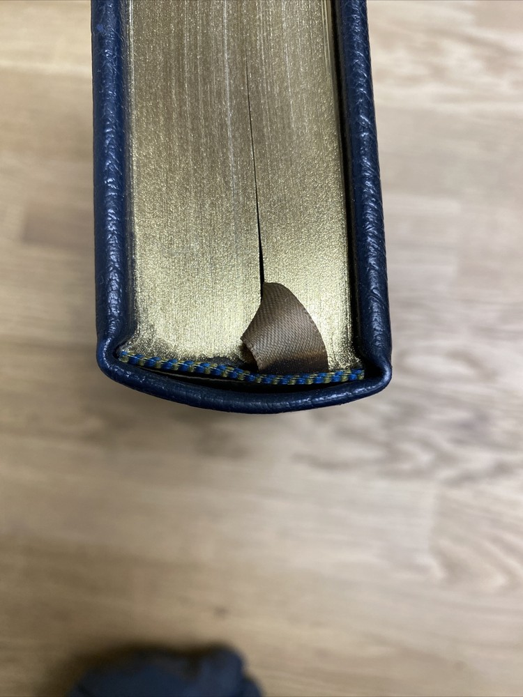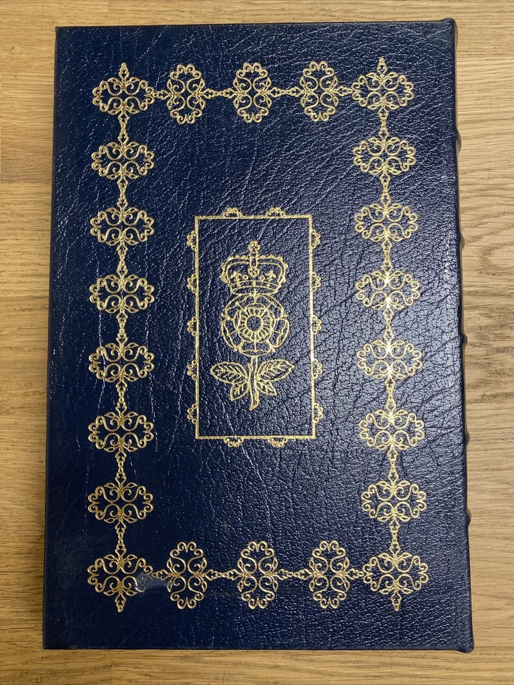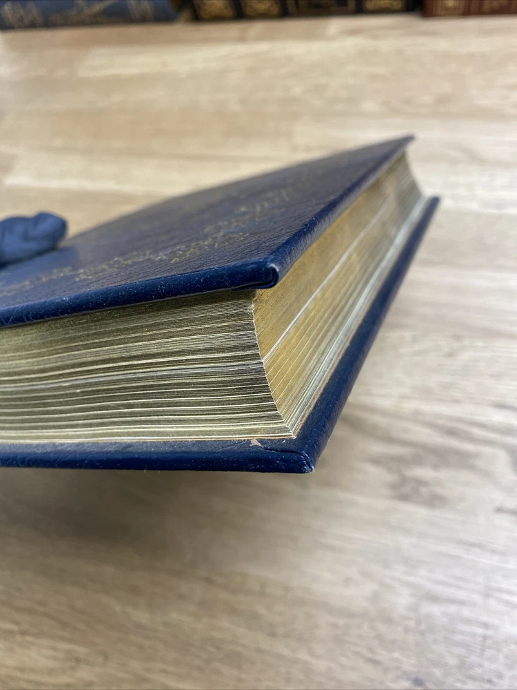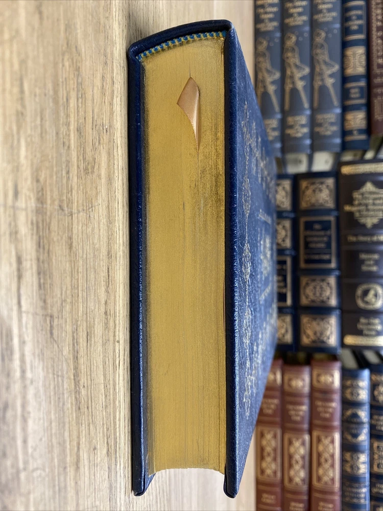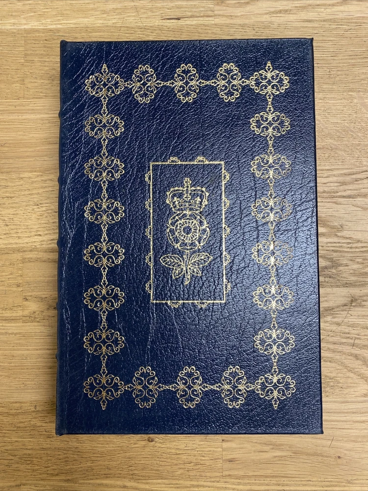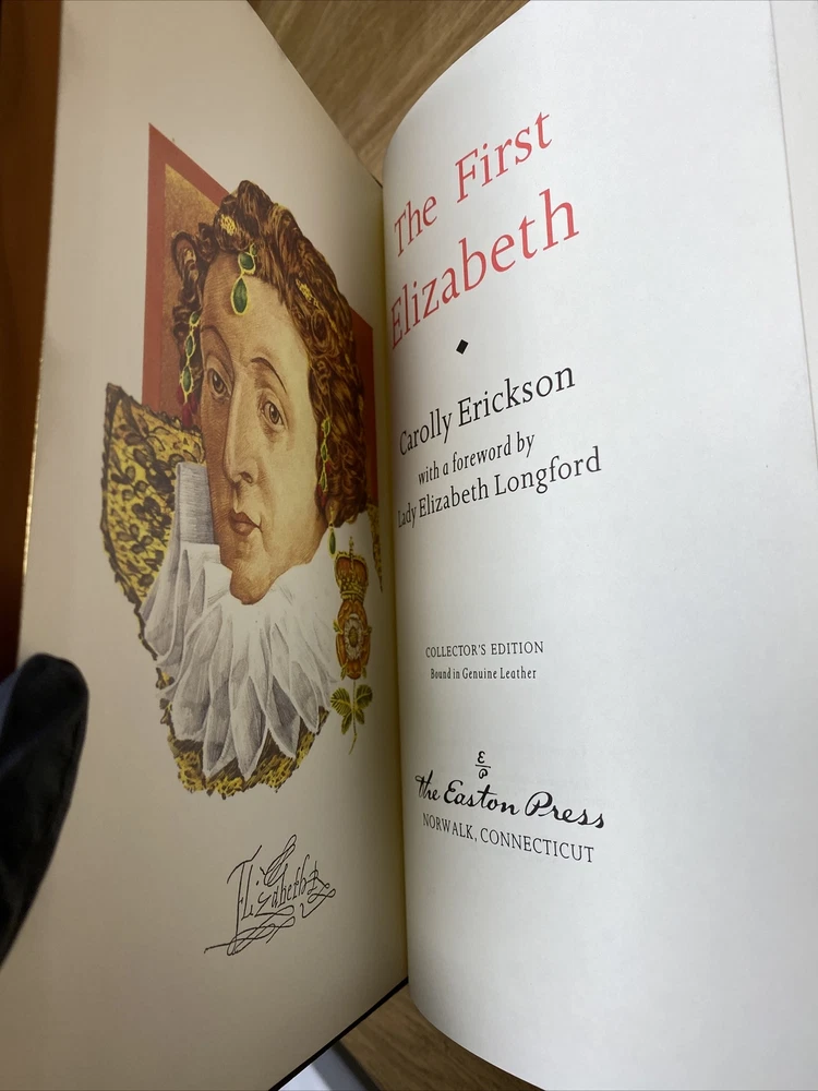 Easton Press QUEEN ELIZABETH I The First MEMOIRS Biography Collectors Edition. Please see photos for condition. Book binding is slightly off—a little crooked, leading to left when laying flat on table. There is minimal wear around the book. Small silver stains and scratch on back of book. Glue stains inside on moire cloth. Binding showing small signs of looseness. Final sale no returns. Shipped with USPS Media Mail C2000