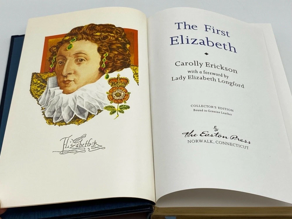 MAKES THE PERFECT GIFT FOR ANY FAN OF QUEEN ELIZABETH I OR THE BRITISH MONARCHY ** PLEASE READ : Mahalo for taking the time to look at our listing. We truly appreciate it. We always do our BEST to give you the most accurate description of these beautiful books. If, however, you have any SPECIFIC questions about the SIZE of the book, NUMBER of pages, TYPE of leather, SMELL or FEEL of the book, PLEASE email us through EBay’s mail system BEFORE you bid, and we will be HAPPY to give you more information. We want you to be completely happy with your purchase and keep you as our customers for years to come.** DESCRIPTION: Easton Press’s full-leather binding of QUEEN VICTORIA by LYTTON STRACHEY. THIS IS A VINTAGE HEIRLOOM EASTON WITH GORGEOUS DEEP GILT IMPRESSIONS TO THE BOARDS AND SPINE with BEAUTIFUL ILLUSTRATIONS. IT IS ONE OF THE MOST HIGHLY-PRIZED EDITIONS OF THIS GREAT BIOGRAPHY. NOTECARD IS INCLUDED. 🍍 NOT INCLUDED… 😃 ABOUT THE BOOK: In this remarkable biography, Carolly Erickson brings Elizabeth I to life and allows us to see her as a living, breathing, elegant, flirtatious, diplomatic, violent, arrogant, and outrageous woman who commands our attention, fascination, and awe. With the special skill for which she is acclaimed, Carolly Erickson electrifies the senses as she evokes with total fidelity the brilliant colors of Elizabethan clothing and jewelry, the texture of tapestries, and even the close, perfumed air of castle rooms. Erickson demonstrates her extraordinary ability to discern and bring to life psychological and physical reality. CONDITION: Book is in LIKE NEW condition for its age with only a couple of faint negligible rubs to the gilt page ends, barely worth noting (SEE PICS). NO ATTACHED BOOKPLATES, WRITING FROM PREVIOUS OWNER, ETC. It is a SPECTACULAR EDITION. SHIPPING: FREE TO US ADDRESSES ONLY. INTERNATIONAL $ based on location. WE SHIP PRIORITY MAIL & I PACK VERY WELL. Please check out our other listings of Easton Press, Franklin Library, Limited Editions Club, First Edition Library, International Collectors Library, Heritage Press and Folio Society editions. WE DO COMBINE SHIPPING IF YOU PURCHASE MORE THAN ONE COPY. Mahalo for looking at our listings! By bidding/purchasing this item, you are helping a very grateful family who sends you our WARMEST ALOHA & MAHALO!