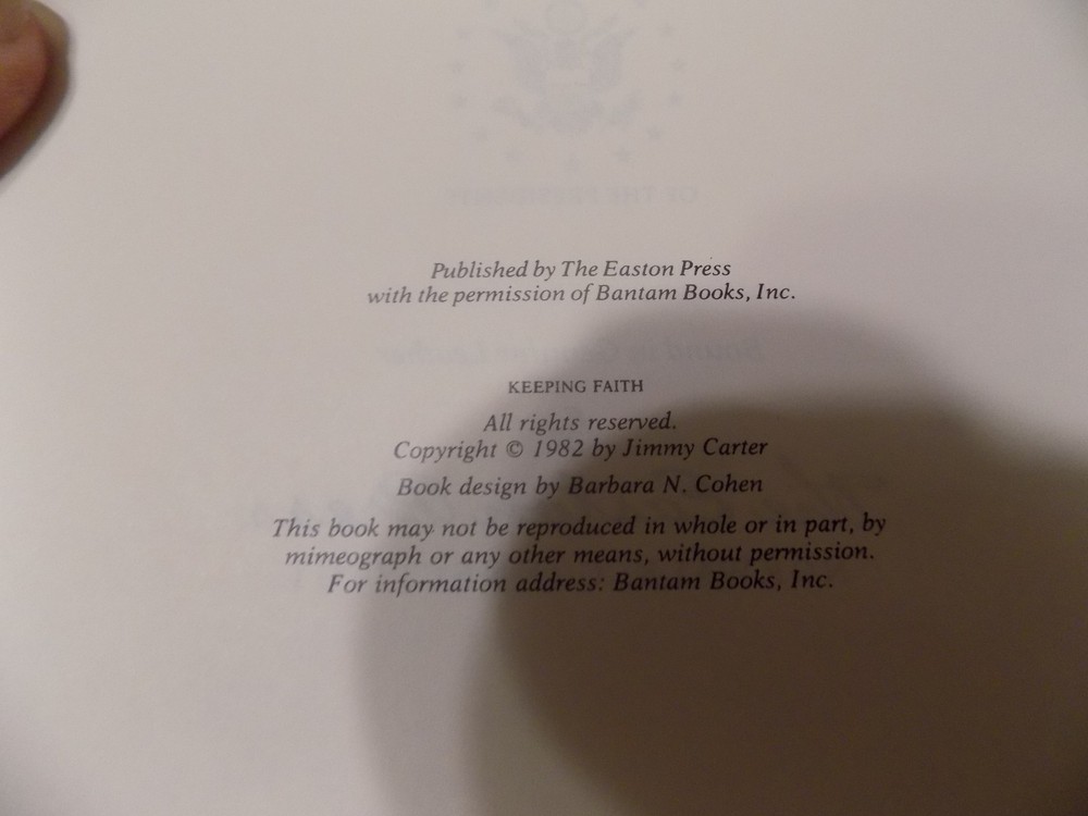 Easton Press - The Library of the Presidents Keeping Faith - Leather-Bound Signed Edition SIGNED by President Jimmy Carter !!! The cover has some peeling(see photo) otherwise excellent includes booklet