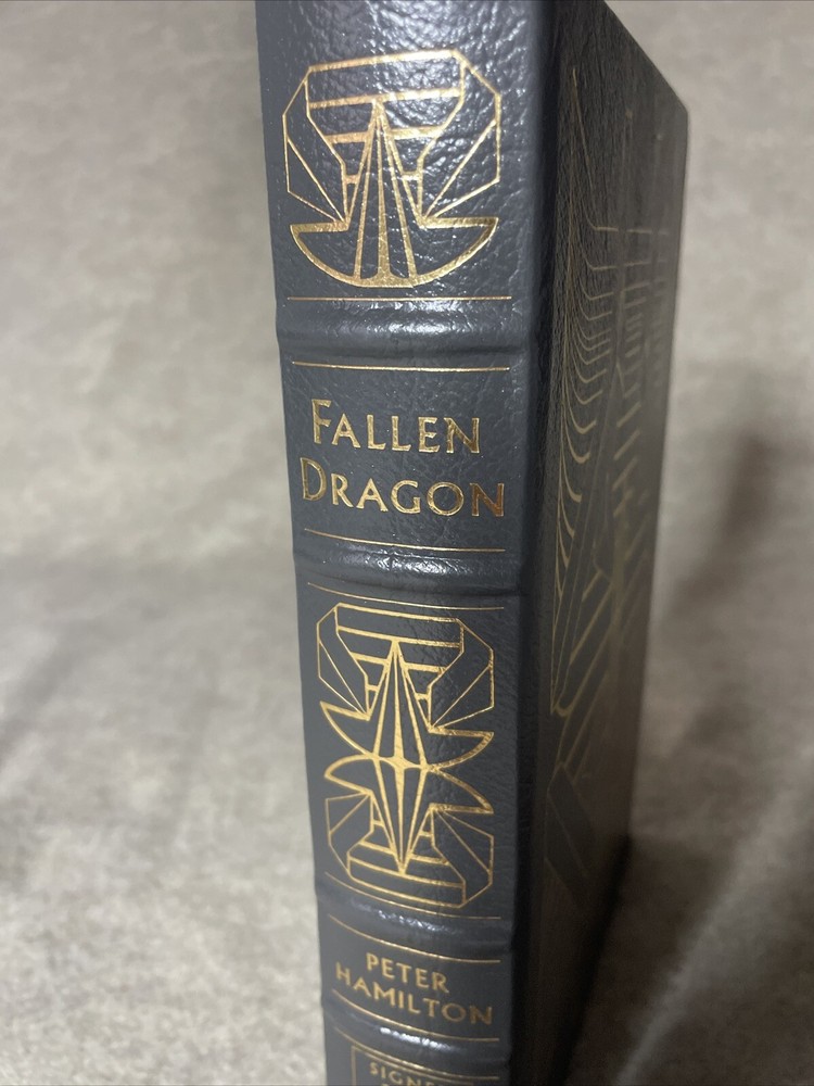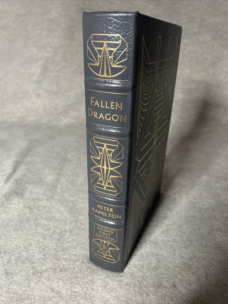 Easton Press Masterpieces of Science Fiction Series Fallen Dragon by Peter Hamilton Signed First Edition There are no book plates in the book. It comes with the collector's notes. This book is in near mint condition with no wear. The gold on the covers shows no wear. The end pages show no fading. The gilt on the edge of the pages is in almost perfect condition with a scratch on the side. Please see photos. We try to describe as accurately as possible so you will be satisfied with your purchase. We have more books from this set on eBay and we would be happy to combine on shipping to save you money. All books are sent with insurance via USPS Media Mail.