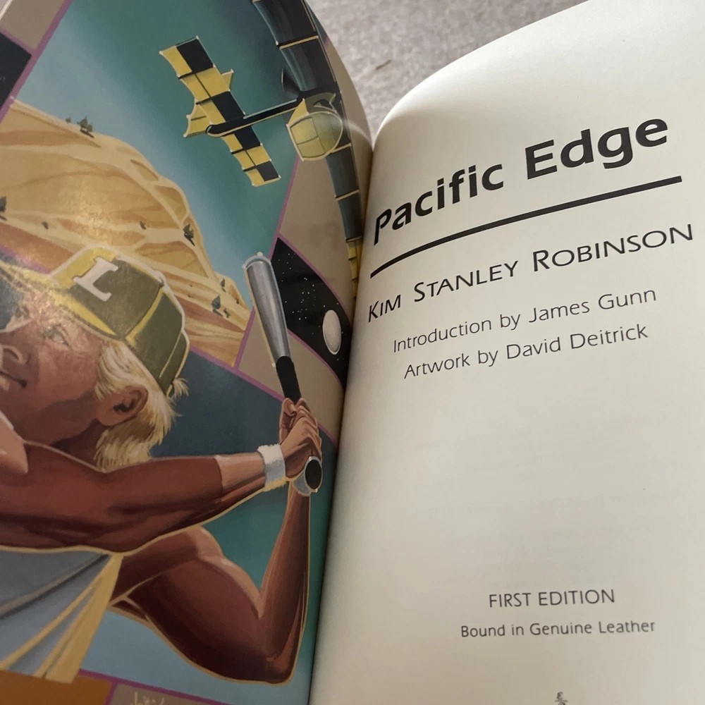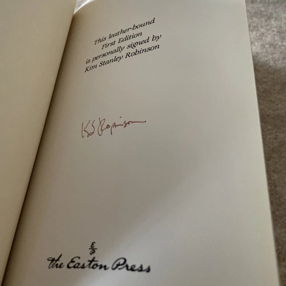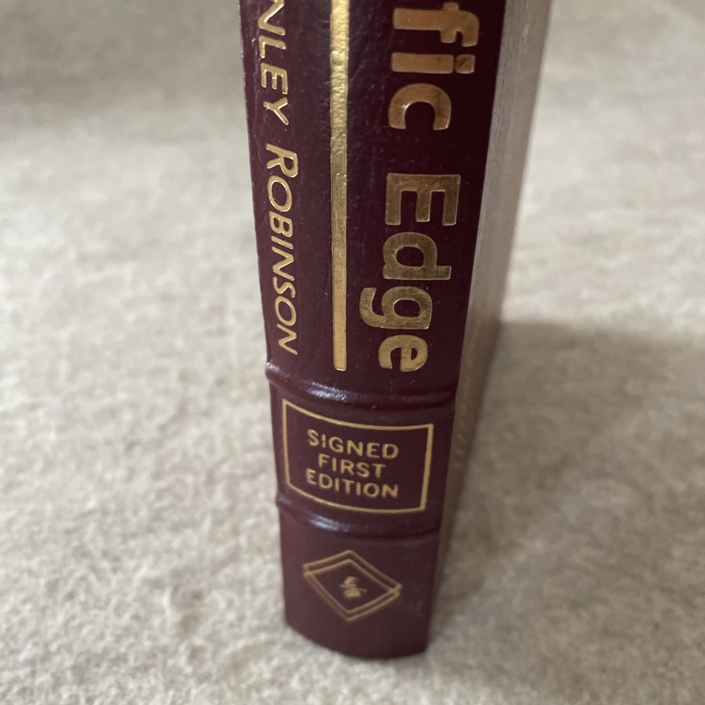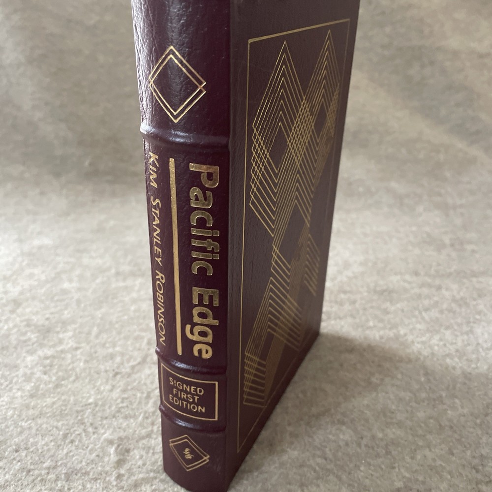 Easton Press Masterpieces of Science Fiction Series Pacific Edge by Kim Stanley Robinson Signed First Edition There are no book plates in the book. It comes with the collector's notes. This book is in near mint condition with a small bump at the top of the front cover. The gold on the covers shows no wear. The end pages show no fading. The gilt on the edge of the pages is in almost perfect condition with a scratch on the top. Please see photos. We try to describe as accurately as possible so you will be satisfied with your purchase. We have more books from this set on eBay and we would be happy to combine on shipping to save you money. All books are sent with insurance via USPS Media Mail.