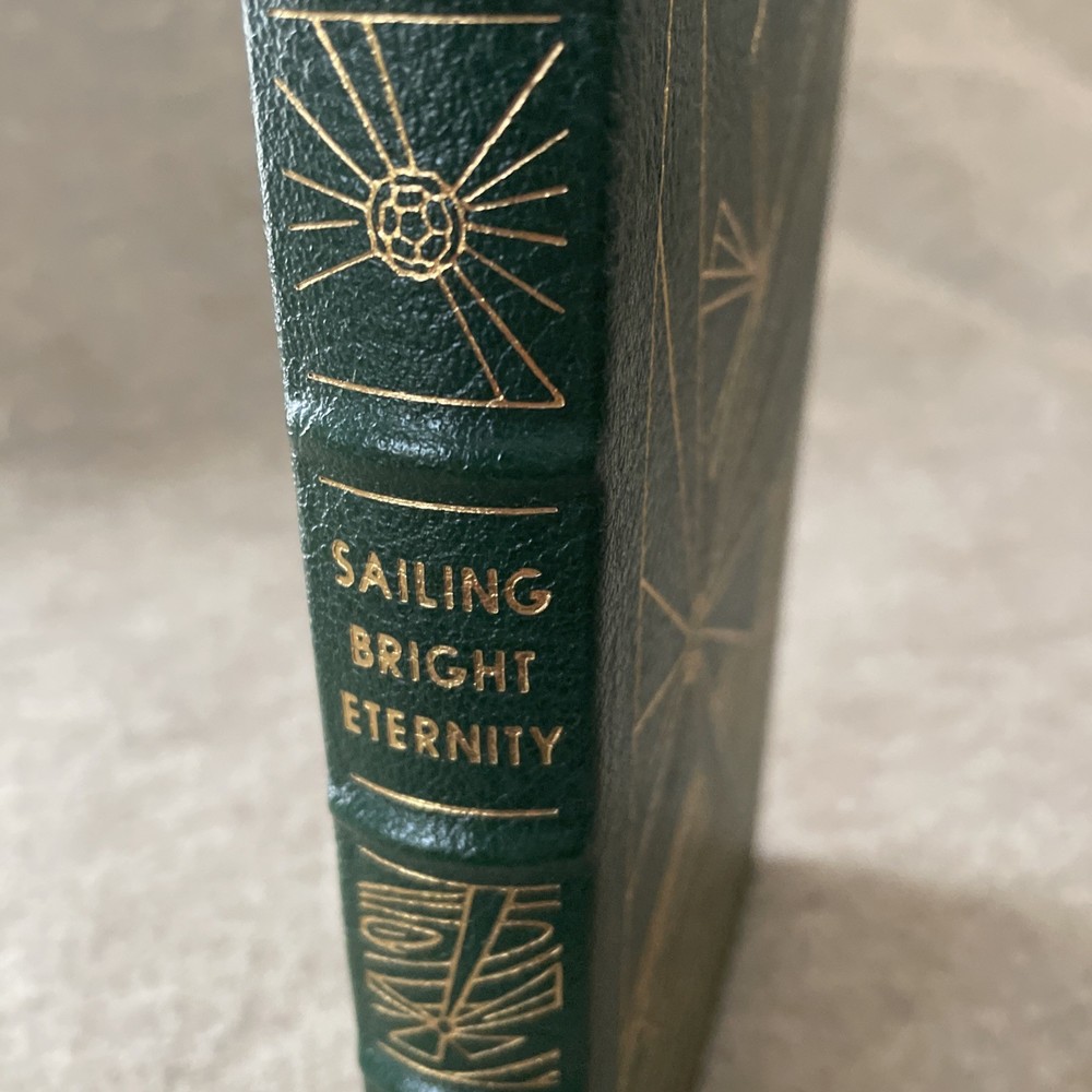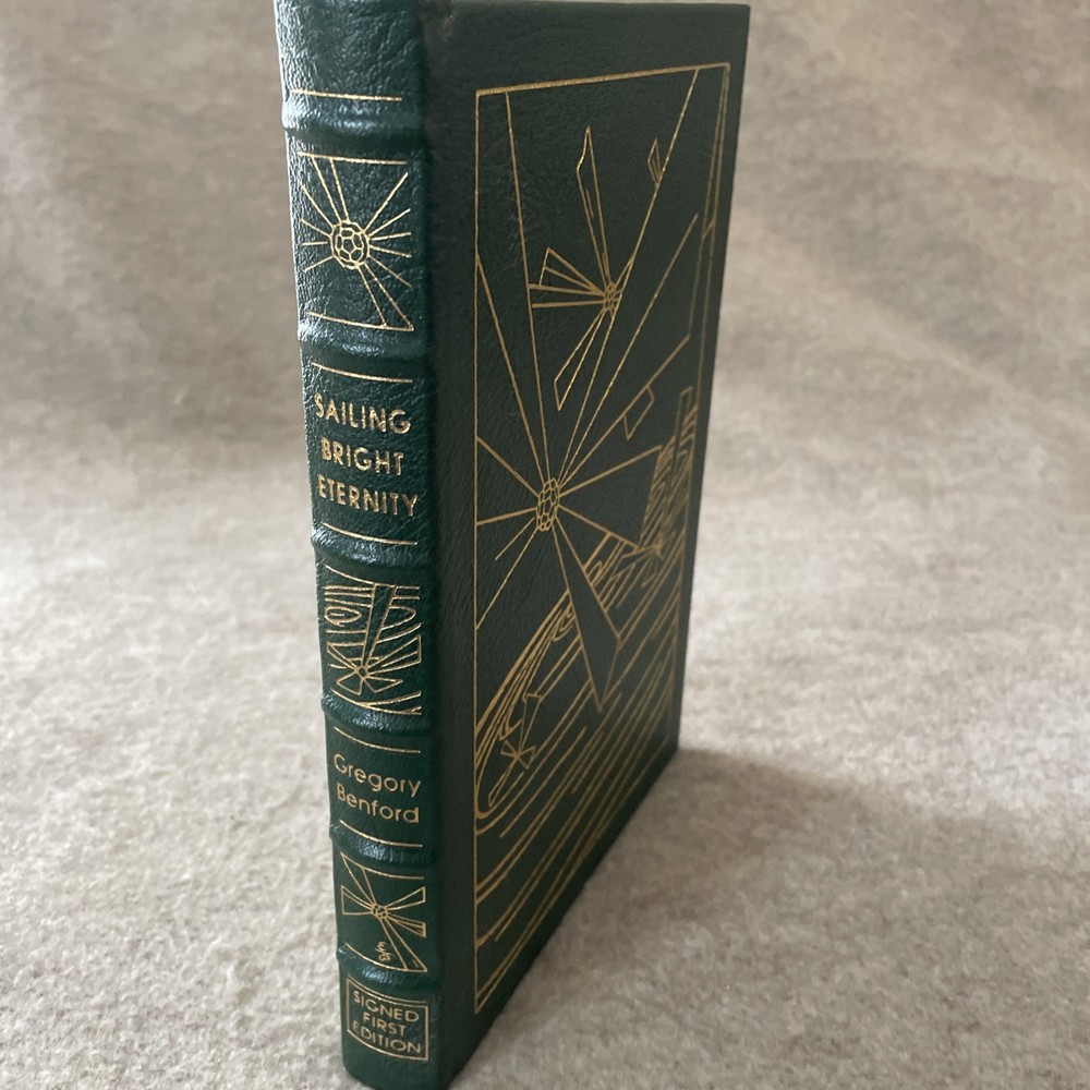 Easton Press Masterpieces of Science Fiction Series Sailing Bright Eternity by Gregory Benford Signed First Edition There are no book plates in the book. It comes with the collector's notes. This book is in near mint condition with no wear. The gold on the covers shows no wear. The end pages show no fading. The gilt on the edge of the pages is in almost perfect condition with a scratch on the side and bottom. Please see photos. We try to describe as accurately as possible so you will be satisfied with your purchase. We have more books from this set on eBay and we would be happy to combine on shipping to save you money. All books are sent with insurance via USPS Media Mail.
