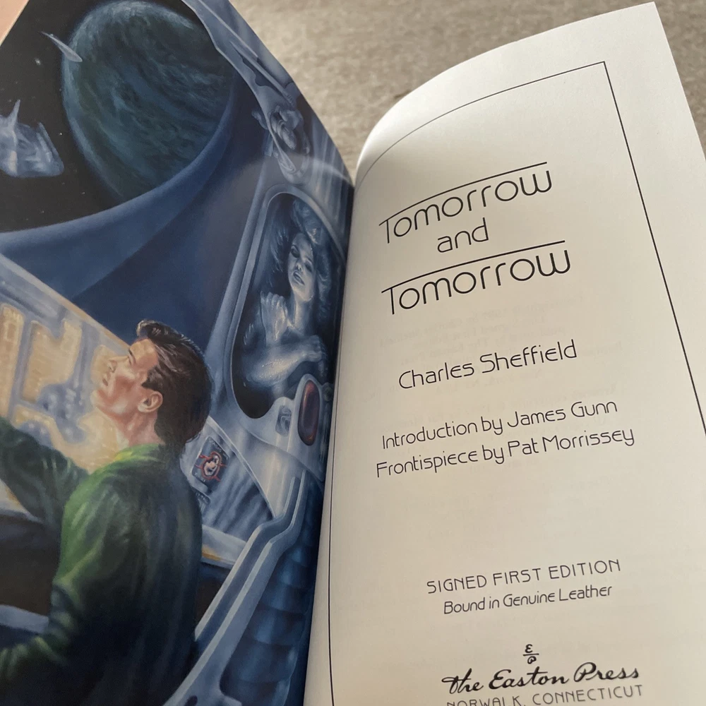 Easton Press Masterpieces of Science Fiction Series Tomorrow and Tomorrow by Charles Sheffield Signed First Edition There are no book plates in the book. It comes with the collector's notes. This book is in near mint condition with no wear. The gold on the covers shows no wear. The end pages show no fading. The gilt on the edge of the pages is in almost perfect condition with a scratch on the side. Please see photos. We try to describe as accurately as possible so you will be satisfied with your purchase. We have more books from this set on eBay and we would be happy to combine on shipping to save you money. All books are sent with insurance via USPS Media Mail.