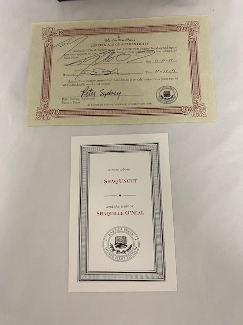 Superman. Diesel. The Big Aristotle. Shaq Fu. The Big Daddy. The Big Shaqtus. Wilt Chamberneezy. The Real Deal. The Big Shamrock. Shaq. You know him by any number of names, and chances are you know all about his legendary basketball Shaquille "Shaq" O'Neal is a four-time NBA champion and a three-time NBA Finals MVP. After being an All-American at Louisiana State University, he was the overall number one draft pick in the NBA in 1992. In his 19-year career, Shaq racked up 28,596 career points (including 5,935 free throws!), 13,099 rebounds, 3,026 assists, 2,732 blocks, and 15 All-Star appearances. These are statistics that are almost as massive as the man himself. His presence-both physically and psychologically-made him a dominant force in the game for two decades. But if you follow the game, you also know that there's a lot more to Shaquille O'Neal than just basketball. Shaq is famous for his playful, and at times, provocative personality. He is, literally, outsize in both scale and persona. Whether rapping on any of his five albums, challenging celebrities on his hit television show "Shaq Vs.," studying for his PhD or serving as a reserve police officer, there's no question that Shaq has led a unique and multi-dimensional life. And in this rollicking new autobiography, Shaq discusses his remarkable journey, including his candid thoughts on teammates and coaches like Kobe Bryant, Dwyane Wade, LeBron James, Phil Jackson, and Pat Riley. From growing up in difficult circumstances and getting cut from his high school basketball team to his larger-than-life basketball career, Shaq lays it all out in Shaq My Story. 290 pages, signed 335 of 900. "Like new" condition. Well-kept in smoke free, pet free home.